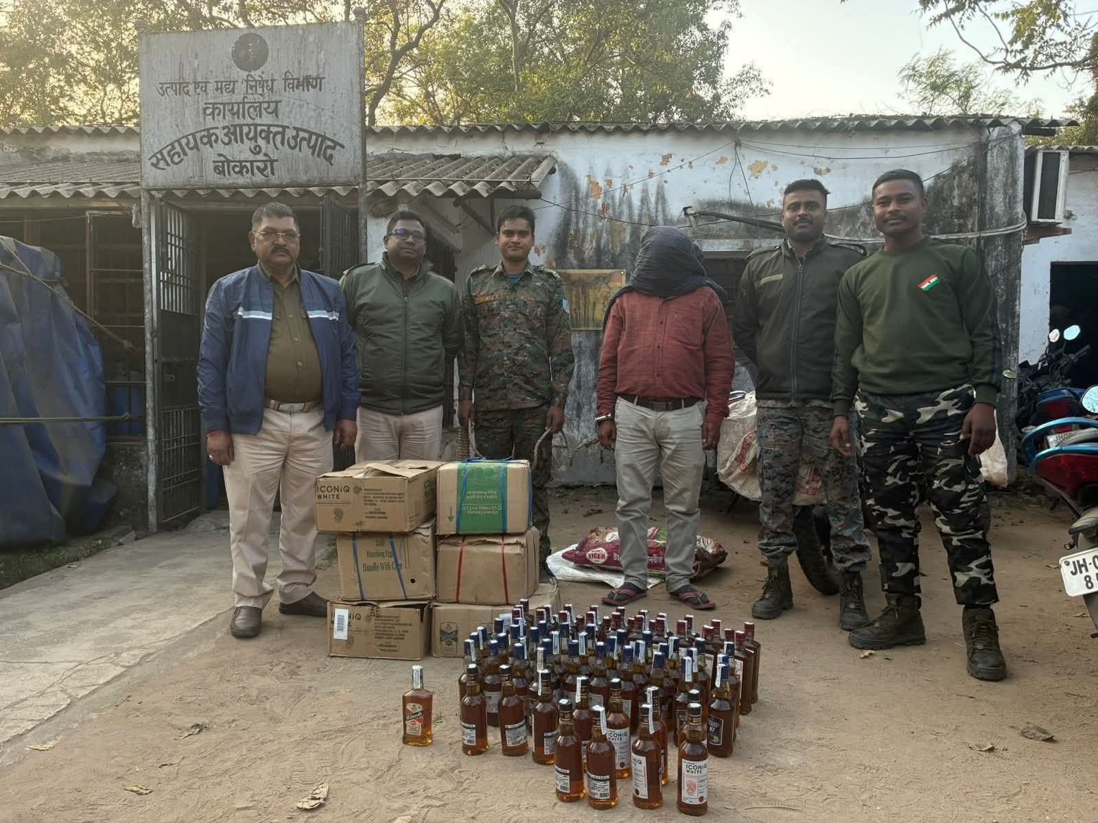 बोकारो : सहायक आयुक्त उत्पाद, बोकारो के निर्देशानुसार गुप्त सूचना के आधार पर उत्पाद विभाग की टीम ने बोकारो जिला के कसमार थाना क्षेत्र अंतर्गत खैराचातर स्थित महाबीर चौक के पास चिंटू शू सेंटर में छापामारी की गई। छापामारी के दौरान *दुकान से विभिन्न ब्रांड की अवैध विदेशी शराब बरामद* की गई। मौके से *अनीश कुमार जायसवाल को गिरफ्तार* किया गया है। *बरामद शराब को विधिवत जब्त करते हुए संबंधित धाराओं के तहत अग्रेत्तर कानूनी कार्रवाई* की जा रही है।