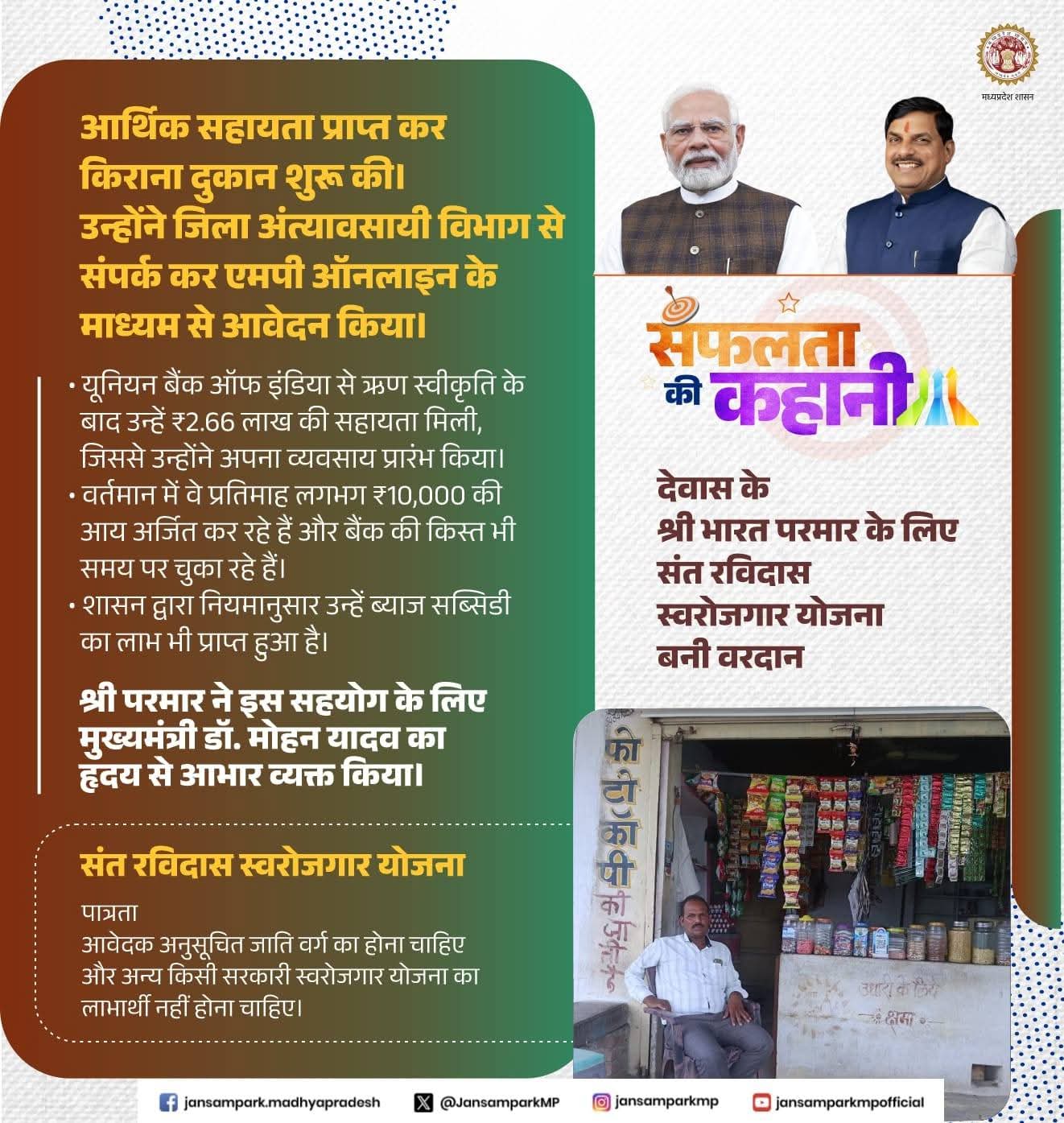 देवास के श्री भारत परमार के लिए "संत रविदास स्वरोजगार योजना" बनी वरदान