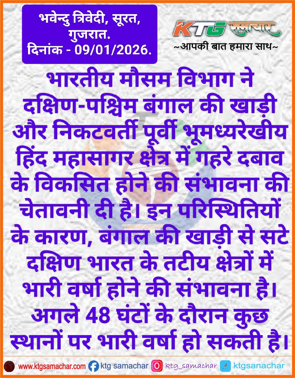 भारतीय मौसम विभाग ने दक्षिण पश्चिम बंगाल की खाड़ी मे गहरे दबाव के विकसित होने की संभावना की चेतावनी दी है।