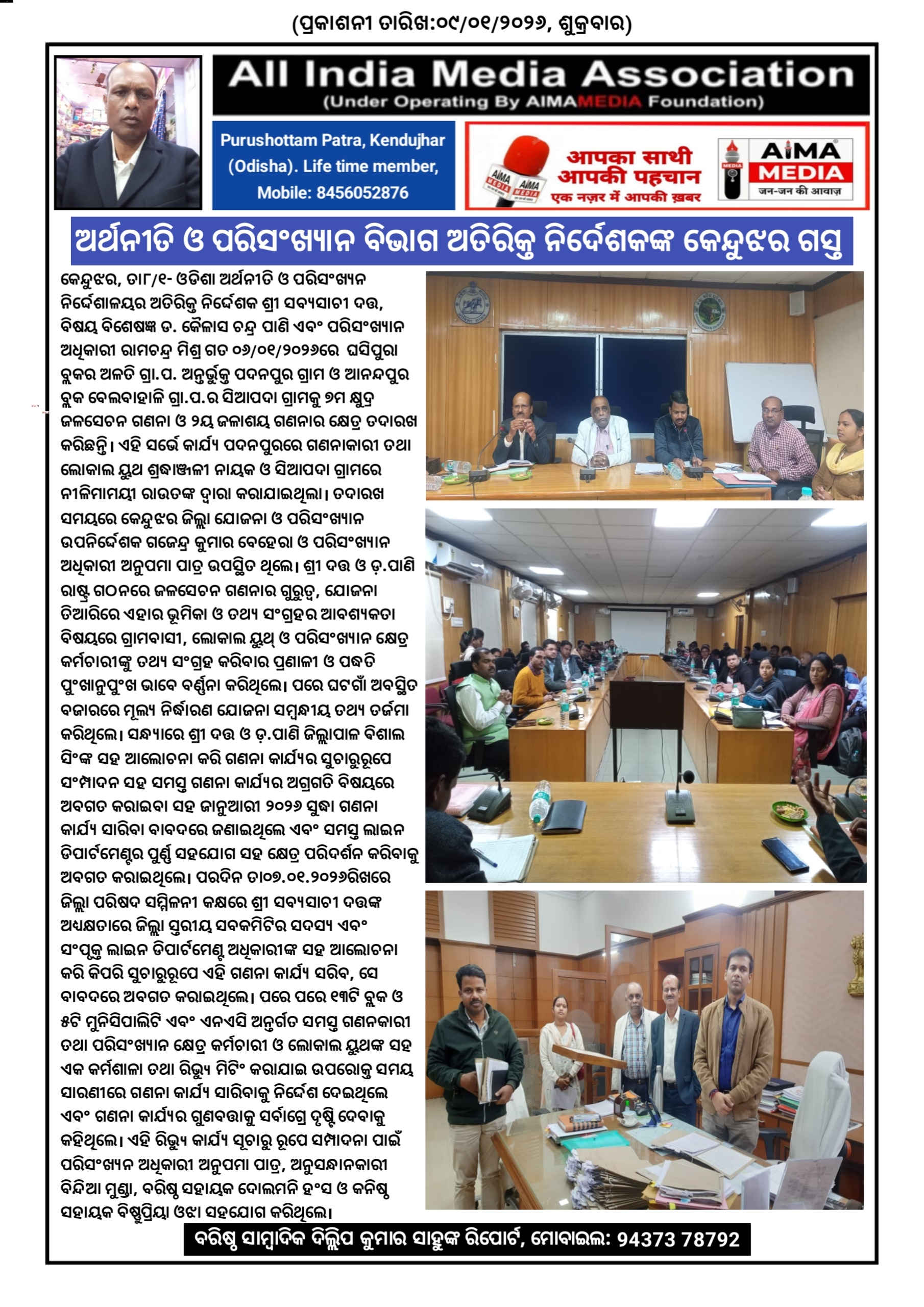 ଅର୍ଥନୀତି ଓ ପରିସଂଖ୍ୟାନ ବିଭାଗ ଅତିରିକ୍ତ ନିର୍ଦେଶକଙ୍କ କେନ୍ଦୁଝର ଗସ୍ତ।
