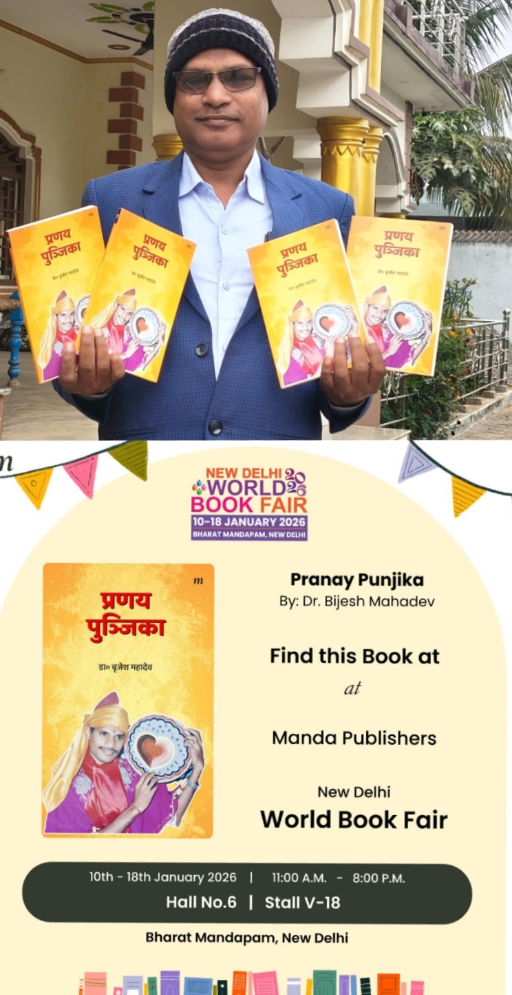 सोनभद्र। 20वां विश्व पुस्तक मेला, नई दिल्ली में 10 से 18 जनवरी 2026 तक भारत मंडपम में आयोजित हो रहा है। इस प्रतिष्ठित अंतरराष्ट्रीय आयोजन में जनपद सोनभद्र के नवोदित रचनाकार, शिक्षक एवं साहित्यकार डॉ बृजेश कुमार सिंह ‘महादेव’ की नवीन काव्य कृति “प्रणय पुंजिका” को शामिल किया गया है। यह पुस्तक भारत मंडपम, हाल संख्या-6, स्टाल संख्या V-18 नई दिल्ली में पाठकों के लिए उपलब्ध रहेगी।