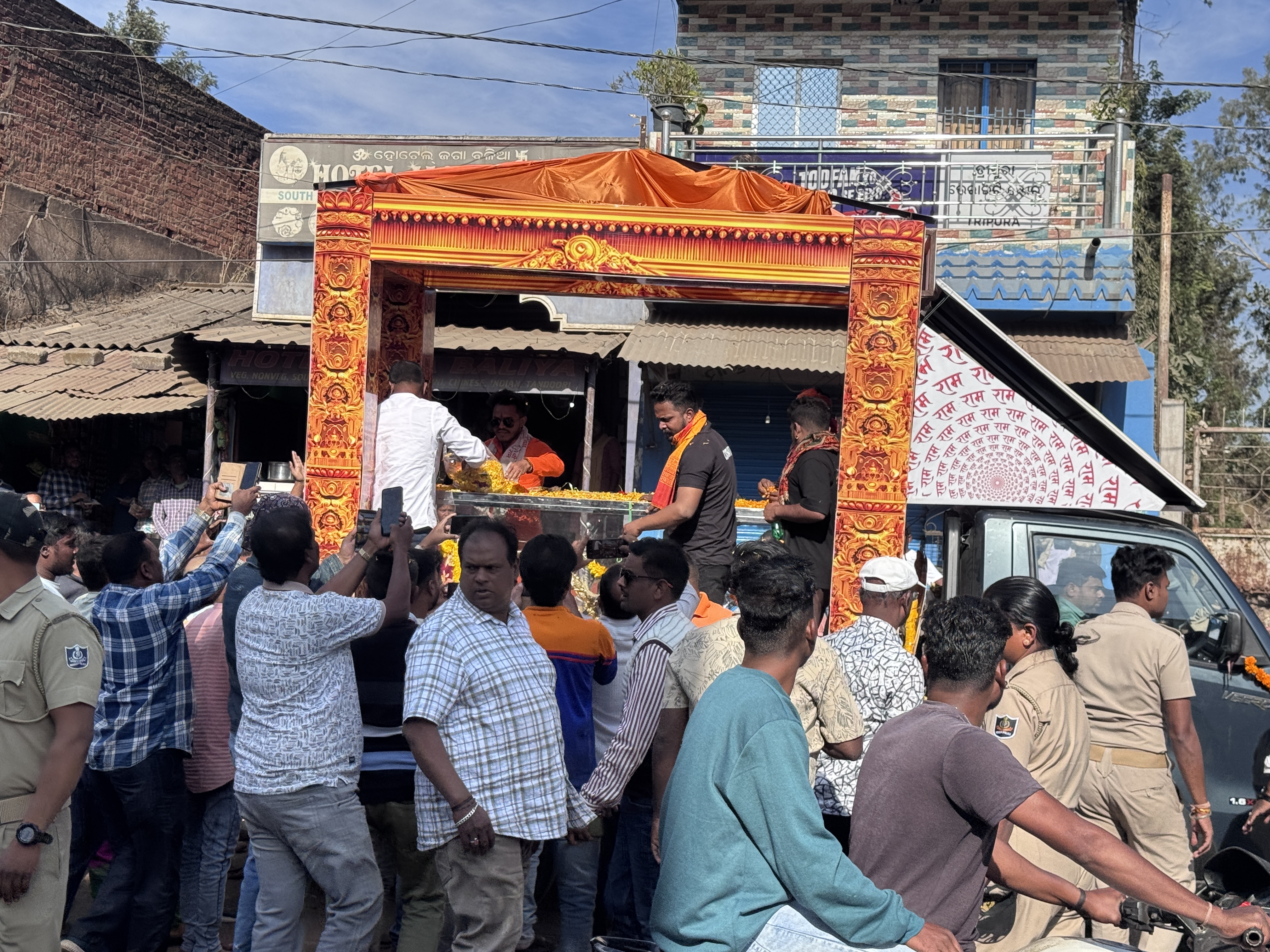 On its arrival at Semiliguda, the atmosphere turned devotional and festive. Residents from all sections of society gathered in large numbers, showering flowers and offering prayers as a mark of reverence. The procession passed through key areas of the town, with chants of “Jai Shri Ram” echoing throughout the streets.