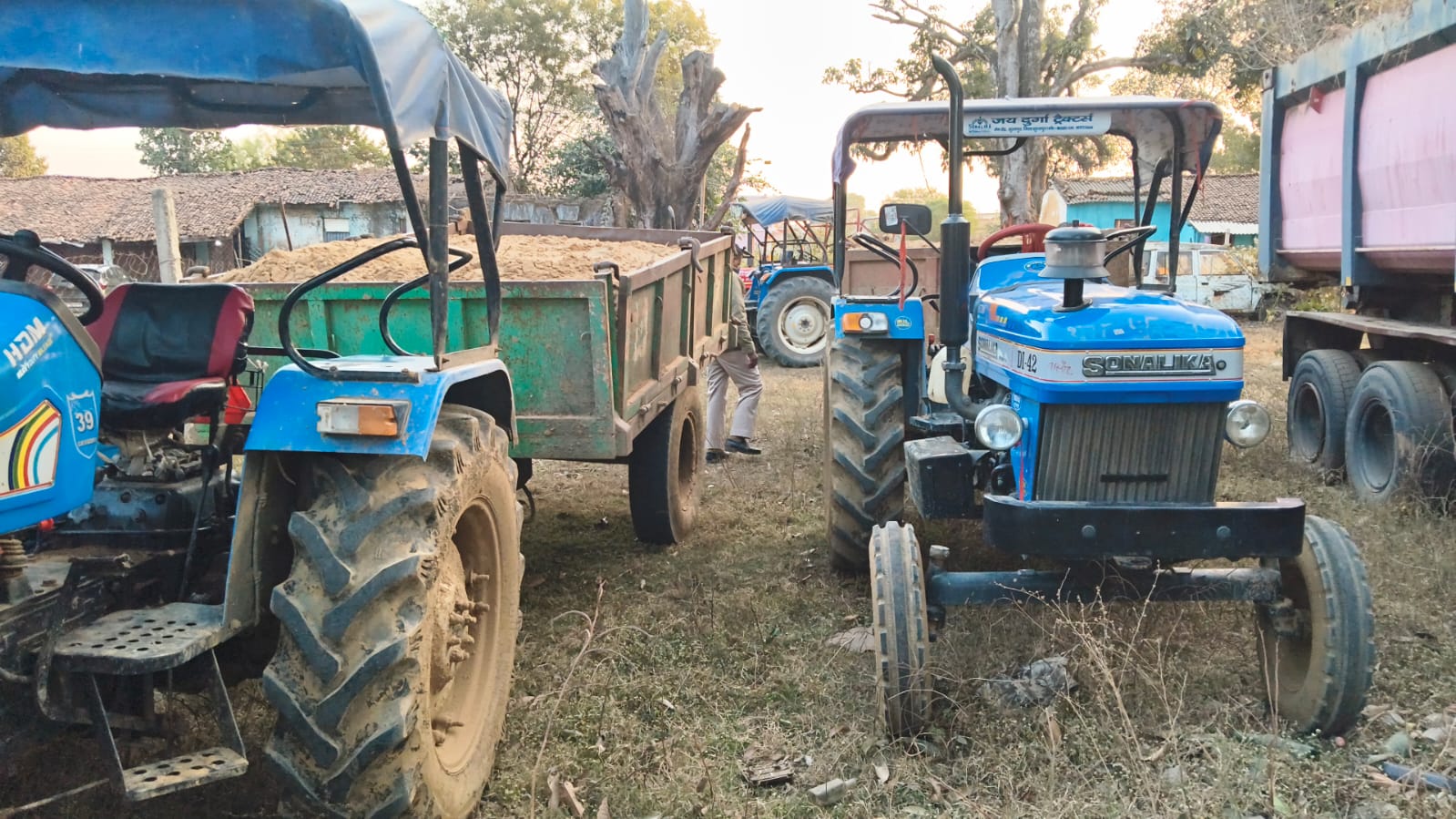 आयशर ट्रैक्टर (बिना नंबर), वाहन मालिक श्री संतोष साहू, सोनालिका ट्रैक्टर (बिना नंबर), वाहन मालिक श्री देवीदयाल है।