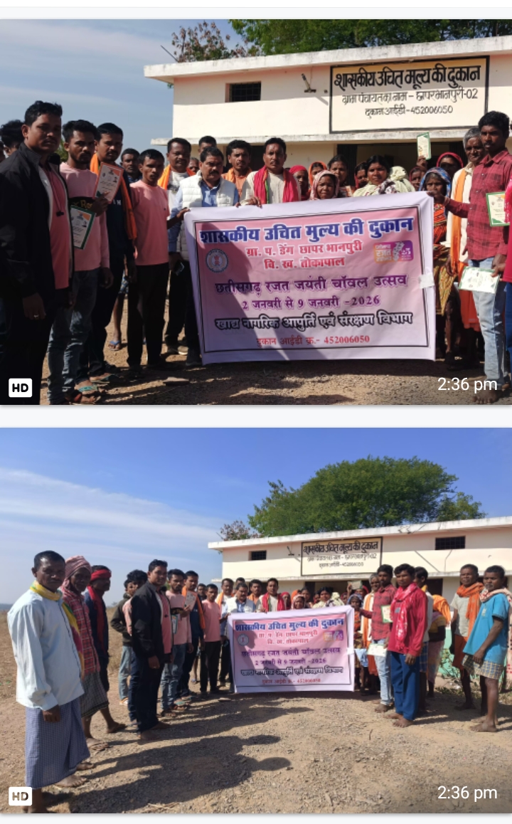 बस्तर जिला अंतर्गत ग्राम पंचायत डेंग छापर भानपुरी स्थित शासकीय उचित मूल्य की दुकान में आज छत्तीसगढ़ राज्य के रजत जयंती वर्ष के उपलक्ष्य में “छत्तीसगढ़ रजत जयंती चावल उत्सव” का भव्य आयोजन किया गया। इस अवसर पर क्षेत्रीय विधायक श्री विनायक गोयल ने उपस्थित होकर हितग्राहियों से आत्मीय भेंट की तथा उन्हें चावल वितरण कर कार्यक्रम का शुभारंभ किया।