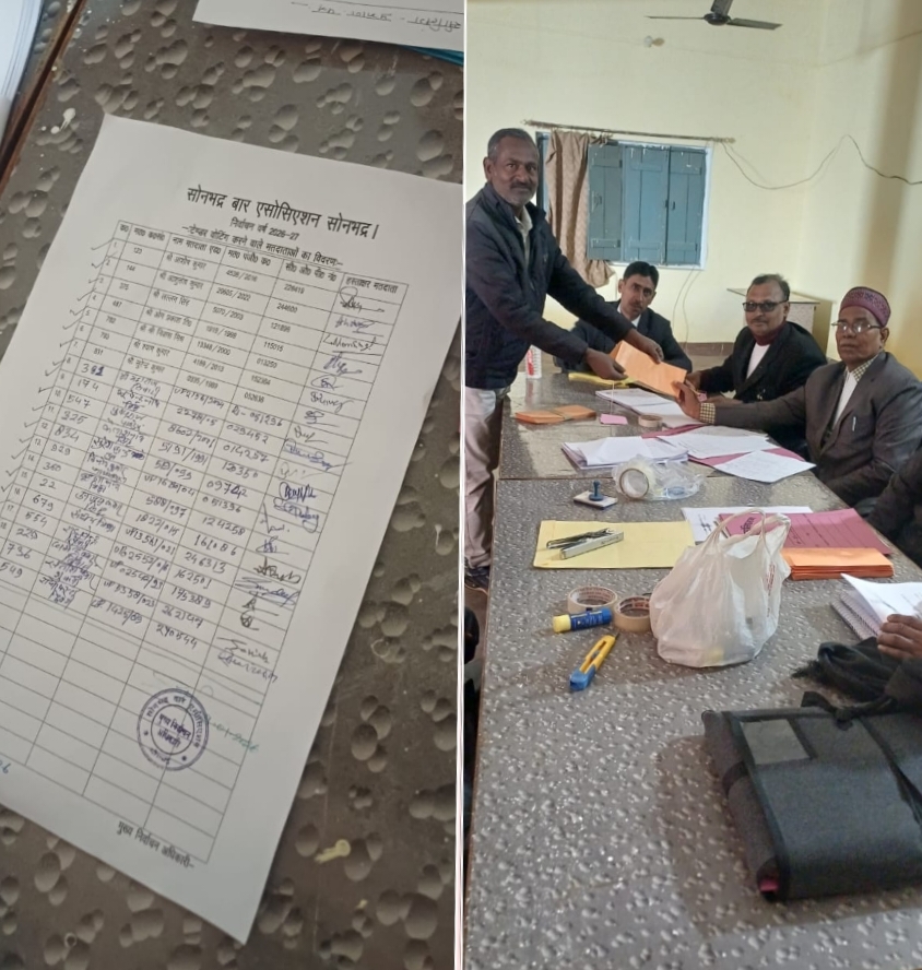 अमान खान। सोनभद्र बार एसोसिएशन वर्ष 2026-2027 के चुनाव के लिए शुक्रवार को अध्यक्ष, वरिष्ठ उपाध्यक्ष, महामंत्री व कोषाध्यक्ष पद के लिए एसबीए सभागार में टेंडर मतदान कराया गया। कुल 969 वकील मतदाता हैं, जिनमें से सिर्फ 20 वकील मतदाताओं ने टेंडर मतदान किया। 13 जनवरी को पूर्ण मतदान कराया जाएगा, जबकि 14 जनवरी को मतगणना के बाद विजयी पदाधिकारियों को एल्डर कमेटी चेयरमैन के जरिए शपथ दिलाई जाएगी।
