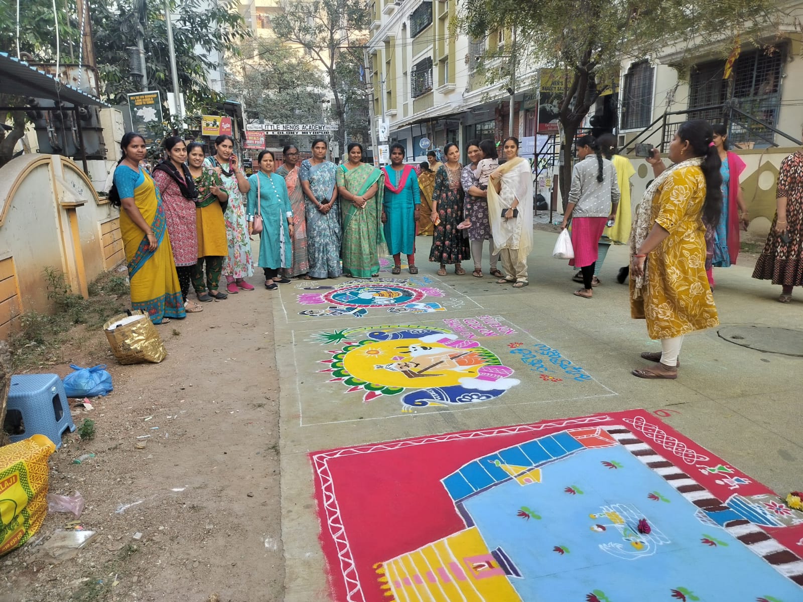 తేది,09-01-2026: శేరిలింగంపల్లి, చందానగర్:మన సంస్కృతి, సాంప్రదాయాలకు ప్రతీకలే పండుగలు. సంక్రాంతి పర్వదినాన్ని పురస్కారించుకొని ఫ్రెండ్స్ వెల్ఫేర్ అసోసియేషన్ మరియు కొమిరిశెట్టి ఫౌండేషన్ సంయుక్త ఆధ్వర్యంలో శేరిలింగంపల్లి జంట సర్కిళ్ళ పరిధిలో గల 35 కాలనీలలో మహిళలకు ముగ్గుల పోటీలు నిర్వహించడం జరుగుతుంది. ప్రతి కాలనీలో పోటీలలో గెలుపొందిన వారికి ప్రథమ, ద్వితీయ, తృతీయ మరియు 5 ప్రోత్సాహక బహుమతులు అందజేయడం జరుగుతుంది. దీనిలో భాగంగా శుక్రవారం మియాపూర్ పరిధిలో గల FCI & WIDIA కాలనీలలలో మహళలకు ముగ్గుల పోటీలు నిర్వహించడం జరిగింది. విజేతలకు బహుమతి ప్రదానం చేసిన అనంతరం కొమిరిశెట్టి ఫౌండేషన్ అధ్యక్షులు కొమిరిశెట్టి సాయిబాబా మరియు ఫ్రెండ్స్ వెల్ఫేర్ అసోసియేషన్ కన్వీనర్ తాడిబోయిన రామస్వామి యాదవులు మాట్లాడుతూ " *పరిశుభ్రత, ఆరోగ్యం, అలంకరణల మేళవింపే ముగ్గులు"* అని అన్నారు. " *ఈ పోటీల వలన మహిళలలో ఉన్న సృజనాత్మక శక్తి వెలికి రావడానికి అవకాశం ఉంటుంది. పట్టణీకరణ నేపథ్యంలో అపార్టుమెంట్ల సంస్కృతి పెరిగిన తరువాత భారతీయ సంస్కృతి, సంప్రదాయాలు నానాటికి కనుమరుగవుతున్నాయి. నేటి యువతరంకూడా మన ప్రాచీన సంస్కృతి, సంప్రదాయాలు కొనసాగించేందుకై ఈ పోటీలు నిర్వహిస్తున్నాము"* అని అన్నారు. " *ఈ ముగ్గుల వలన పరిసరాలు పరిశుభ్రతగా ఉంటాయి. గోమయంతో కళ్ళాపి జల్లి బియ్యపుపిండితో ముగ్గులు వేయడం వలన బియ్యపు పిండి తినడానికి చీమలు చేరతాయి. ఆ విధంగా చీమలు క్రిమి కీటకాదులు ఇంటిలోనికి రాకుండా అడ్డుకుంటాయి. ఈ ముగ్గులు వేసే ప్రక్రియలో మహిళలు అనేక శరీరక భంగిమలలో పనిచేయవలసి ఉంటుంది. ఈ వ్యాయామ ప్రక్రియ వలన మహిళలలో అనేక గర్భకోశ వ్యాధులు రాకుండా ఉండేందుకు అవకాశం ఉందని వైద్యులు తెలిపారు. కావున ప్రతి మహిళ కూడా ప్రత్యేకించి ఈ ధనుర్మాసం మొత్తం నెలరోజులు అత్యంత ఉత్సాహంగా వేకువ ఝామున లేచి ముగ్గులు వేయడం ప్రారంభిస్తారు"* అని అన్నారు. ఈ పోటీలలో 30 + 25 మంది మహిళలు పాల్గొన్నారు. ఈ కార్యక్రమంలో స్థానిక మహిళా నాయకురాళ్ళు శ్రీమతి చంద్రకళ మరియు ఫ్రెండ్స్ వెల్ఫేర్ అసోసియేషన్ సభ్యులు శివరామకృష్ణ, అమ్మయ్య చౌదరి తదితరులు పాల్గొన్నారు.