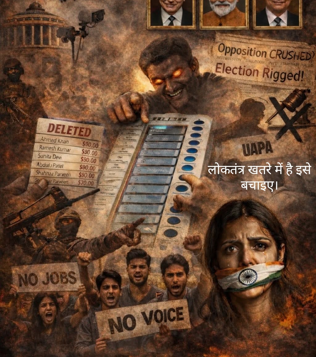 यही वजह है कि जनता की पीड़ा पर सत्ता को कोई फर्क नहीं पड़ता सवाल पूछना “राष्ट्रद्रोह” बन जाता हैँ और चुप रहना “देशभक्ति” जागिए ! क्योंकि यह सिर्फ विपक्ष की लड़ाई नहीं हैँ लोकतंत्र पक्ष और विपक्ष से बनता हैँ । एक पंख कट जाए—तो लोकतंत्र उड़ नहीं सकता।आज भारत के लोकतंत्र का चेहरा कुरूप किया जा रहा हैँ।