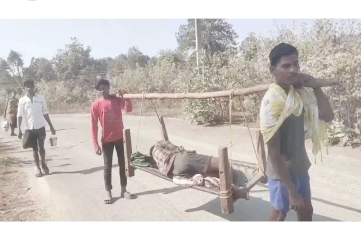 स्वास्थ विभाग की लचर व्यवस्था, एंबुलेंस की नहीं मिली सुविधा, खाट पर मरीज को ले जाने हुए मजबूर