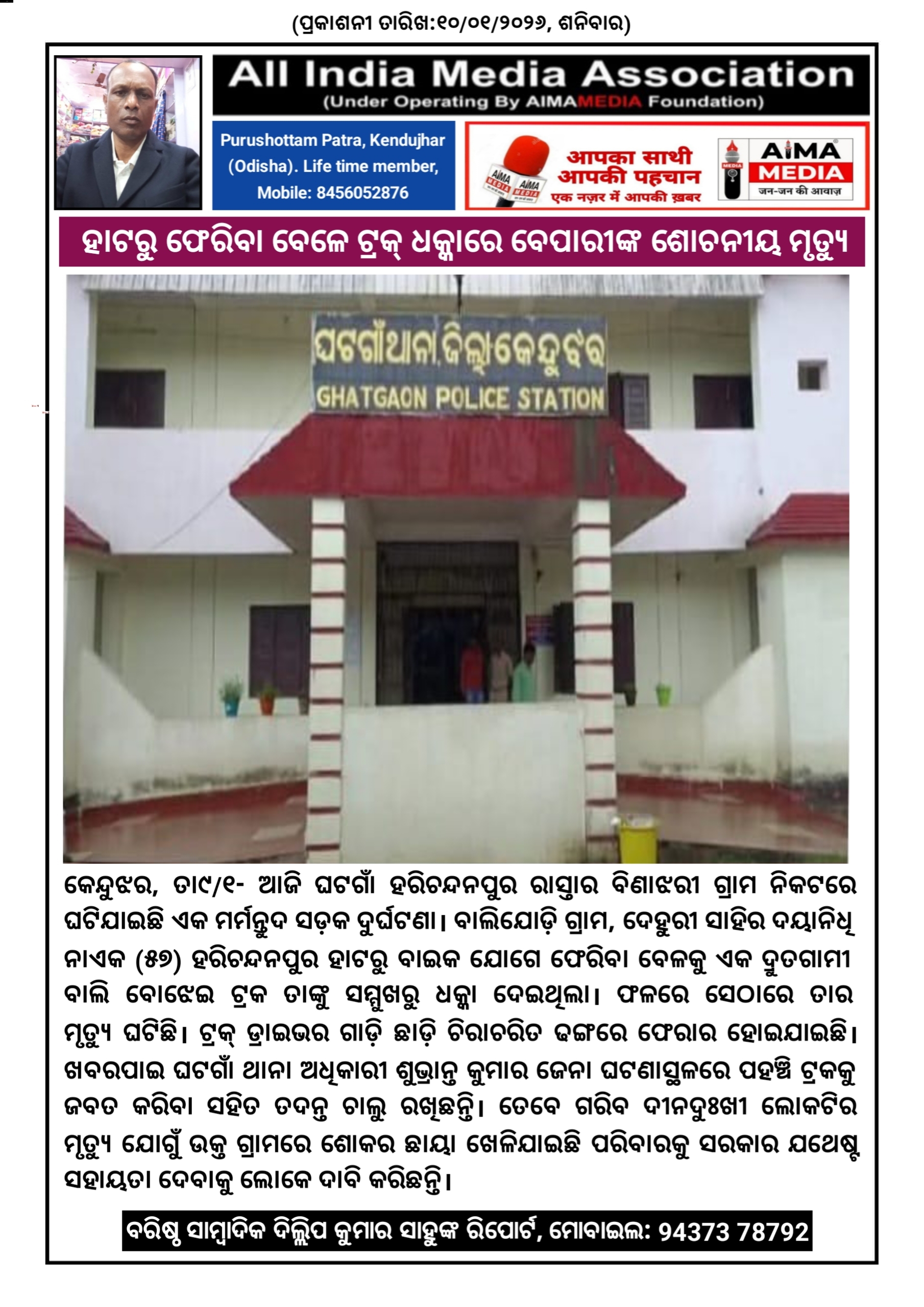 ହାଟରୁ ଫେରିବା ବେଳେ ଟ୍ରକ୍ ଧକ୍କାରେ ବେପାରୀଙ୍କ ଶୋଚନୀୟ ମୃତ୍ଯୁ।