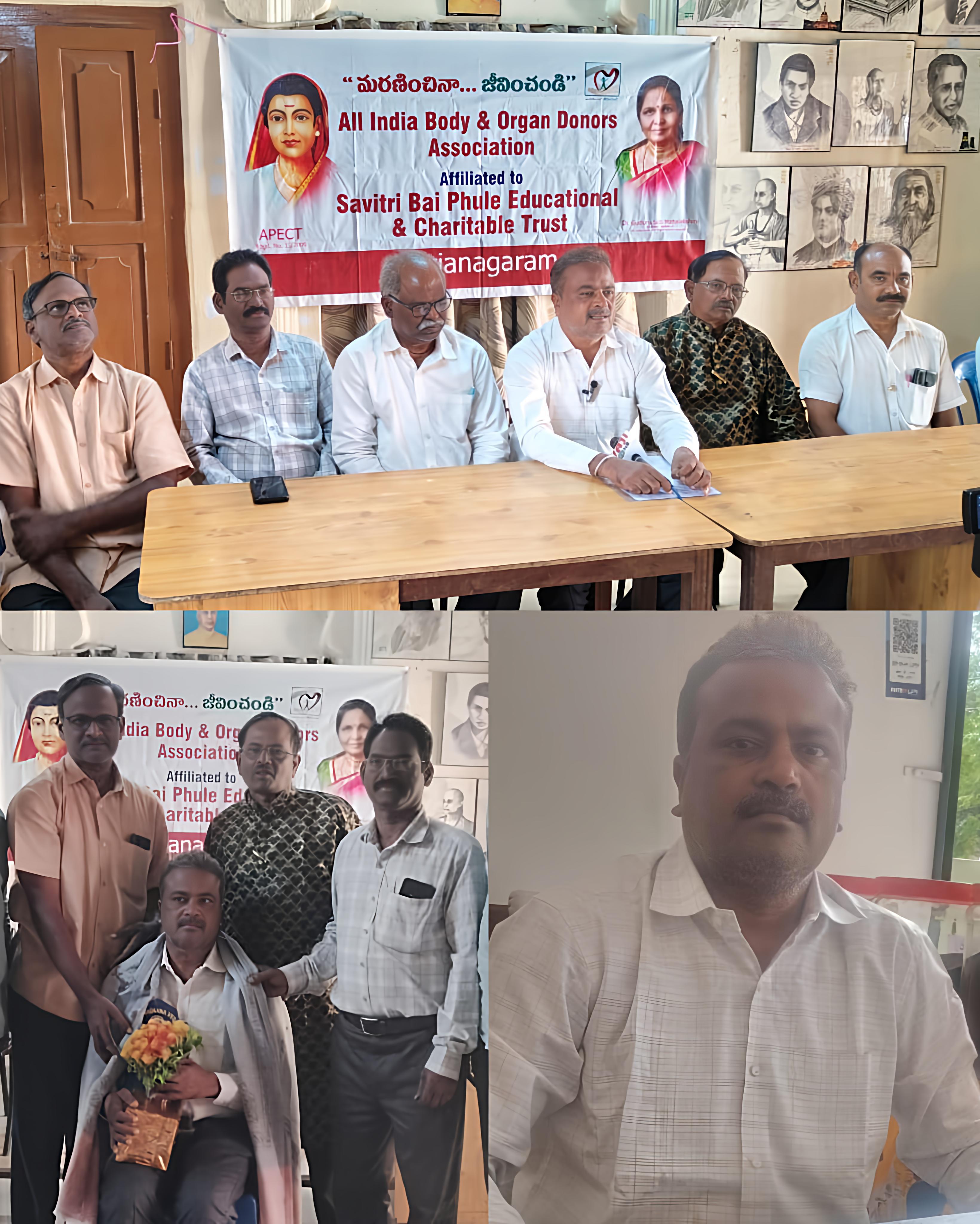 అఖిలభారత అవయవాదాతల సంఘం రాష్ట్ర ప్రధాన కార్యదర్శిగా సీనియర్ జర్నలిస్ట్,జనవిజ్ఞాన జిల్లా ట్రెజరర్ షిణగం శివాజీ నియమితులయ్యారు.రాష్ట్ర ప్రధాన కార్యదర్శిగా బాధ్యతలు తీసుకున్న శివాజీ గురజాడ పాఠశాలలో శనివారం నిర్వహించిన విలేకరుల సమావేశంలో మాట్లాడుతూ తనకు రాష్ట్ర ప్రధాన కార్యదర్శిగా బాధ్యతలు అప్పగించిన అఖిలభారత శరీర అవయవ దాతల సంఘం,స్పెక్ట్ వ్యవస్థాపక అధ్యక్షురాలు డాక్టర్ గూడూరు సీతామహాలక్ష్మికి ధన్యవాదాలు తెలియజేశారు. డాక్టర్ గూడూరు సీతామహాలక్ష్మి గత రెండున్నర దశాబ్దాలుగా శరీర,అవయవ దానం గురించి ఆంధ్ర,తెలంగాణ రాష్ట్రాల్లో అలుపెరగని ఉద్యమాన్ని చేస్తున్నారని, ఆమె ఉద్యమాలు ఫలితంగా ఇప్పటికే ప్రజల్లో శరీర, అవయవదానంపై ప్రజలు చైతన్య వంతులై వేలాదిమంది శరీర, అవయవదానాలకు ముందుకు వస్తున్నారని చెప్పారు.శరీర, అవయవ దాతలు సంఘం రాష్ట్ర ప్రధాన కార్యదర్శిగా తనకు అప్పగించిన బాధ్యతలను శక్తి వంచన లేకుండా కృషి చేస్తానని ఆయన చెప్పారు.పుట్టిన ప్రతి మనిషికి మరణం తప్పదని, మరణించిన తర్వాత మన శరీరాన్ని అగ్నికి ఆహుతి చేయకుండా,మట్టిలో కలపకుండా శరీర,అవయవదానం చేయాలని ప్రజలకు విజ్ఞప్తి చేశారు.సహజ మరణం లేదా దురదృష్టం కొద్దీ ఏదైనా ప్రమాదంలో బ్రెయిన్ డెడ్ అయిన వారు అవయవ దానం చేస్తే మరి కొంతమంది ప్రాణాలను కాపాడి వారి ద్వారా మనం తిరిగి మరణించిన.. జీవించవచ్చని.. పేర్కొన్నారు.అదేవిధంగా మరణించిన తర్వాత శరీర దానం చేస్తే, ఆ శరీరం మెడికల్ కళాశాలలో కొంత మంది వైద్యులు ప్రయోగాలకు ఉపయోగపడుతుందని తెలిపారు. శరీర,అవయవధానం చేయాలన్న, ఎవరికైనా అవయవాలు కావాలన్నా జీవన్ధాన్ పోర్ట్ లో రిజిస్ట్రేషన్ చేయించుకోవాలని తెలిపారు.శరీర,అవయవదానం చేసేందుకు కుటుంబ సభ్యుల అనుమతి తప్పనిసరిగా ఉండాలన్నారు.శరీర, అవయవదానం చేయాలన్న వారు 8790824914 నెంబర్ కు సంప్రదించాలని విజ్ఞప్తి చేశారు. జనవిజ్ఞాన వేదిక జాతీయ వర్కింగ్ ప్రెసిడెంట్ డాక్టర్ ఎంవిఆర్ కృష్ణాజి మాట్లాడుతూ అవయవ దాతల సంఘానికి జన విజ్ఞాన వేదిక తరపున అవసరమైన అన్ని సహకారాలు అందజేస్తామని తెలిపారు.ఇప్పటికే జనవిజ్ఞాన వేదిక వ్యవస్థాపకులు డాక్టర్ బ్రహ్మారెడ్డి తన మరణానంతరం శరీరాన్ని మెడికల్ కళాశాలకు అప్పగిస్తూ విల్లు రాయడం జరిగిందని, జంపా కృష్ణ కిషోర్ మృతదేహాన్ని విజయవాడ మెడికల్ కళాశాలకు అప్పగించడం జరిగిందని ఈ సందర్భంగా ఆయన తెలిపారు.అనంతరం జెవివి తరఫున అవయవదాతల సంఘం రాష్ట్ర ప్రధాన కార్యదర్శిగా బాధ్యతలు తీసుకున్న శివాజీని సత్కరించారు. ఈ కార్యక్రమంలో జేవివి జిల్లా అధ్యక్ష,ప్రధాన కార్యదర్శులు ఎరుకొండ ఆనంద్, డాక్టర్ మిరియాల కృష్ణారావు, పీ.షణ్ముఖరావు,జనార్దనరావు, పాపునాయుడు పాల్గొన్నారు.