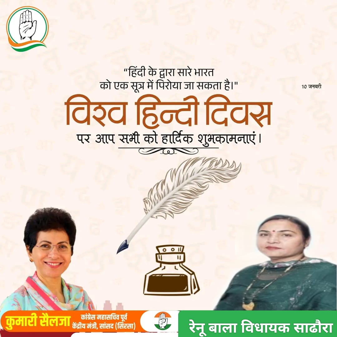 कपुरी :- हल्का सधौरा विधायक मैडम रेणु बाला जी नें विश्व हिंदी दिवस पर शुभकामनायें दीं, "आप सभी देशवासियों को #विश्व_हिंदी_दिवस की बहुत-बहुत बधाई एवं हार्दिक शुभकामनाएँ" ।