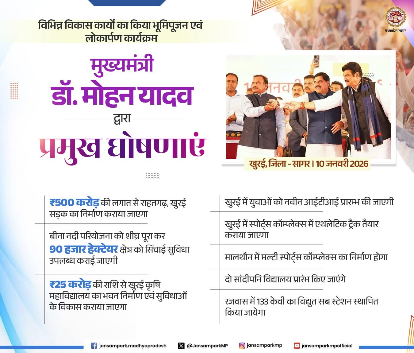 मुख्यमंत्री डॉ.मोहन यादव द्वारा प्रमुख घोषणाएं