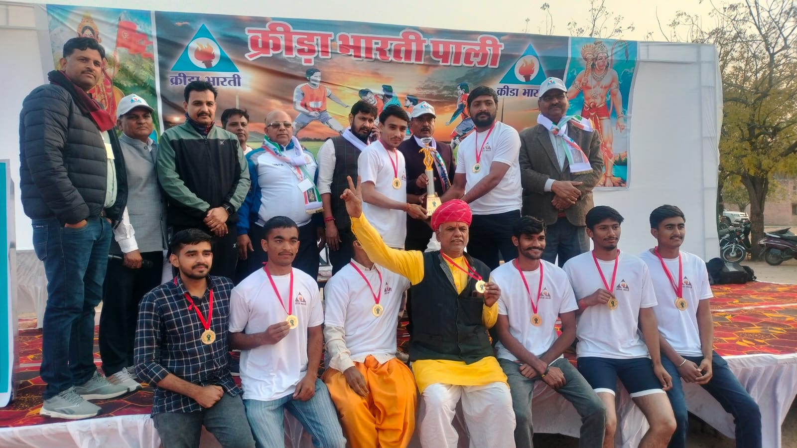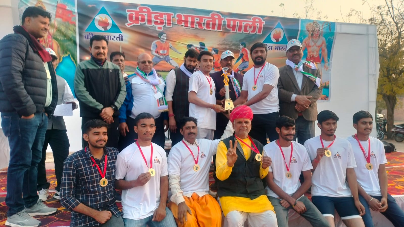 क्रिडा भारती के अनुसार बालिका वर्ग 10 से 14 वर्ष में रेपडावास प्रथम व चीमा बाई स्कूल दूसरे स्थान पर रही। 14 से 19 वर्ष में प्रथम रेपडावास व दूसरे स्थान भी रेपडावास की टीम रही। 19 से 35 वर्ष में रेपडावास प्रथम व कुशालपुरा टीम दूसरे स्थान पर रही। बालक व पुरुष वर्ग में 10 से 14 वर्ष में केन्द्रीय विद्यालय प्रथम व ओझा स्कूल दूसरे स्थान पर रहे। 14 से 19 वर्ष में अंटबड़ा प्रथम व बगड़ी दूसरे स्थान पर रहे। 19 से 35 वर्ष में अटबड़ा प्रथम स्थान व एनसीसी कॉलेज दूसरे स्थान तथा 35 वर्ष से ज्यादा आयु वर्ग पुरुष में जांगिड़ समाज प्रथम व जय हिन्द क्लब द्वितीय रहे।
