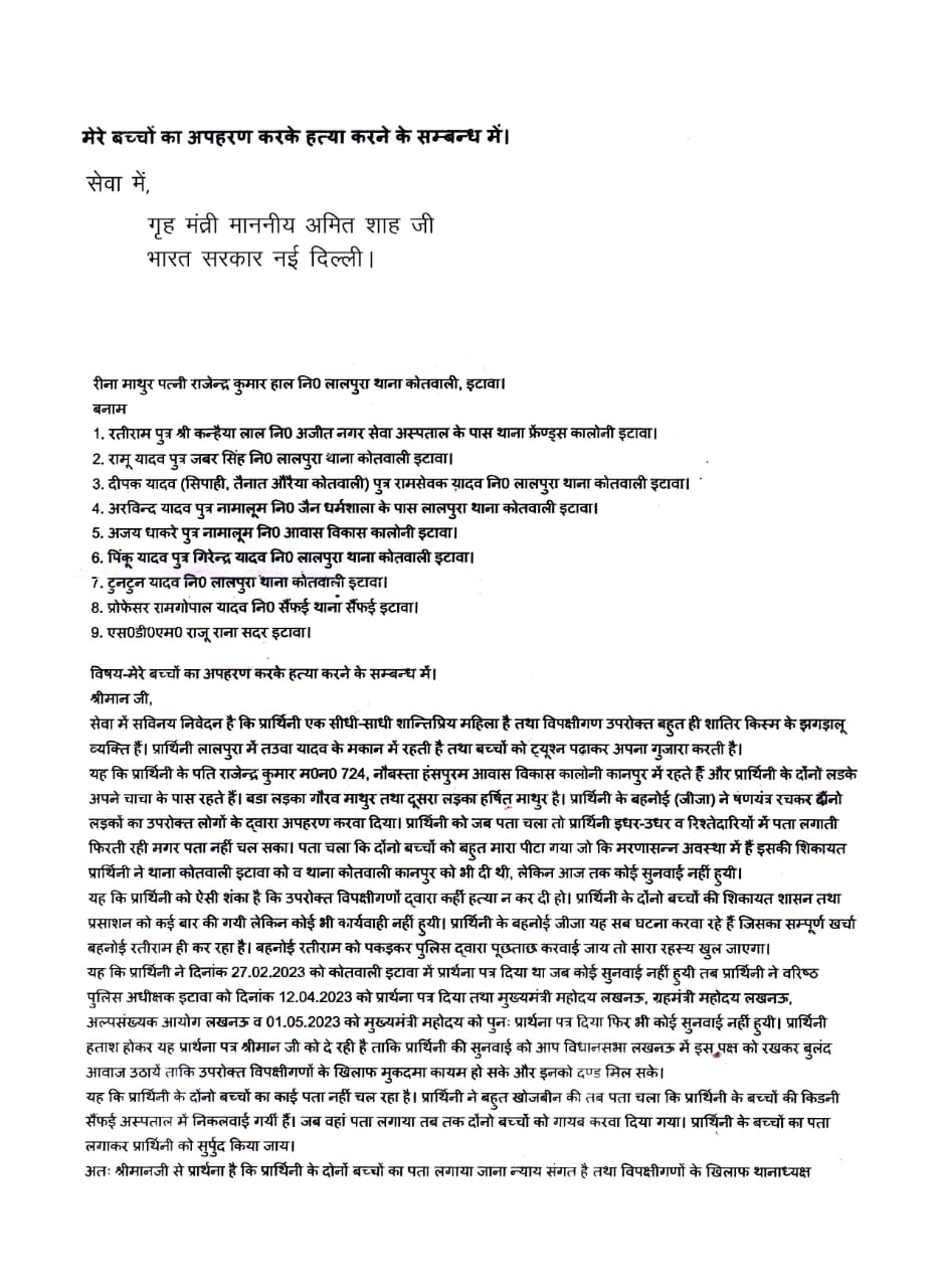 रीना पत्नी राजेन्द्र कुमार हाल, निवासी लालपुरा, थाना कोतवाली, जनपद इटावा, एक शांतिप्रिय, कानून का सम्मान करने वाली महिला है, जो बच्चों को ट्यूशन पढ़ाकर अपने परिवार का भरण-पोषण करती है।