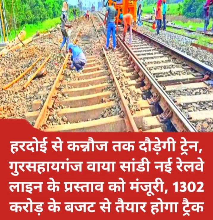हरदोई से कन्नौज तक दौड़ेगी ट्रेन, गुरसहायगंज वाया सांडी नई रेलवे लाइन के प्रस्ताव को मंजूरी, 1302 करोड़ के बजट से तैयार होगा ट्रैक