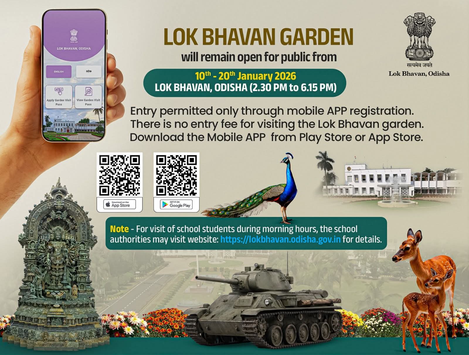 Odisha Lok Bhavan Gardens will be open to the public from January 10 to 20, 2026