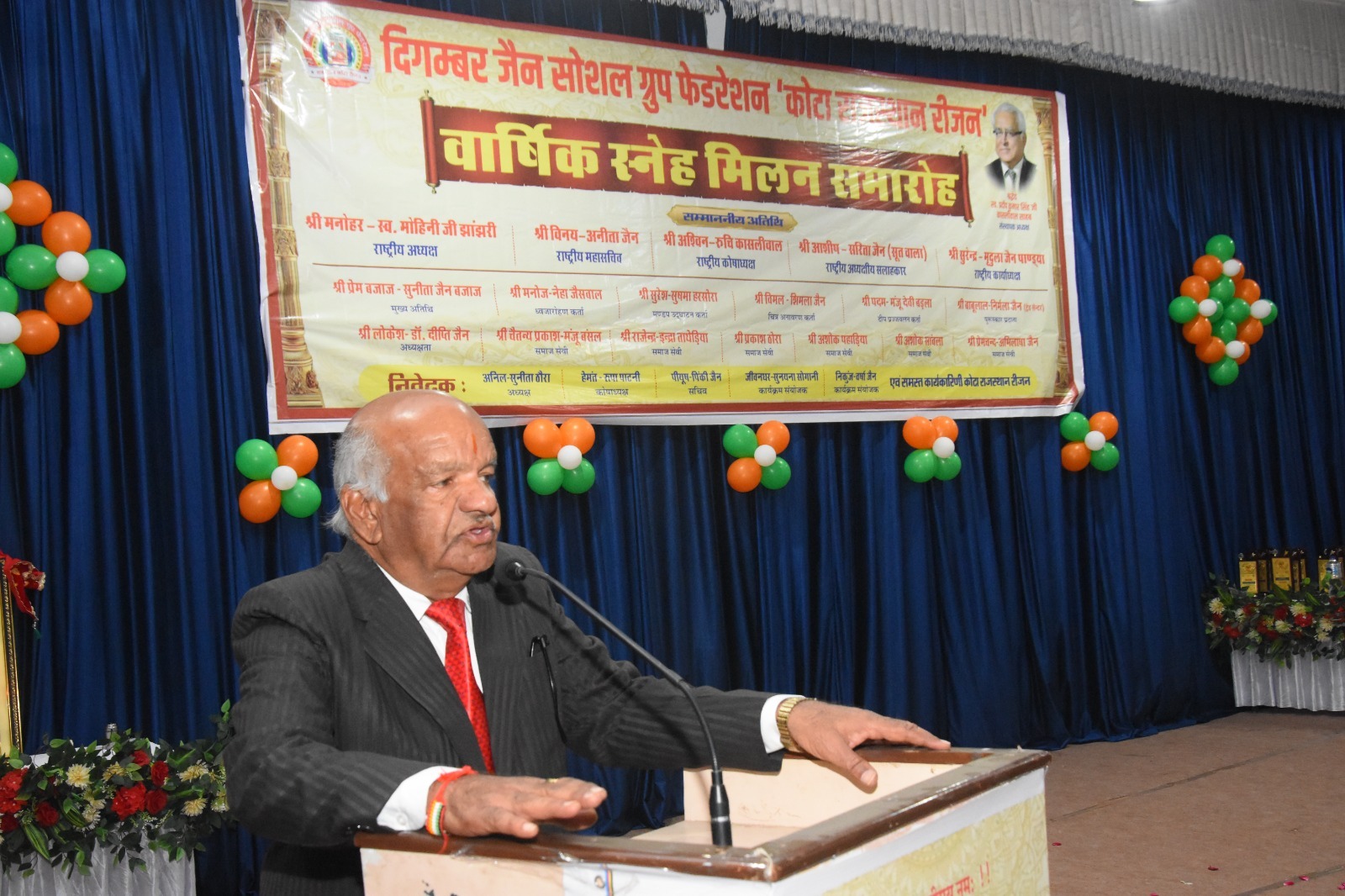 कोटा। दिगंबर जैन सोशल ग्रुप फेडरेशन ‘कोटा राजस्थान रीजन’ द्वारा आयोजित वार्षिक स्नेह मिलन समारोह का आयोजन रविवार को रामशंताएभ सभागार, स्वामी विवेकानंद विद्यालय, महावीर नगर तृतीय, कोटा में किया गया। समारोह का उद्देश्य सामाजिक समरसता, सेवा भावना, संगठनात्मक सुदृढ़ता एवं जैन मूल्यों के प्रचार–प्रसार को सशक्त बनाना है।