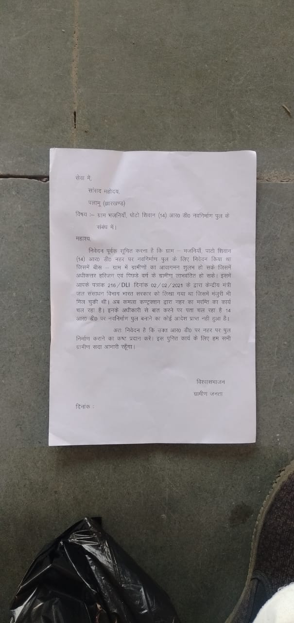 उतर कोयल दायी मुख्य नहर में पोटो गांव के पास पुल निर्माण के लिए ग्रामीणों ने पलामू सांसद से मिलकर रखे मांग