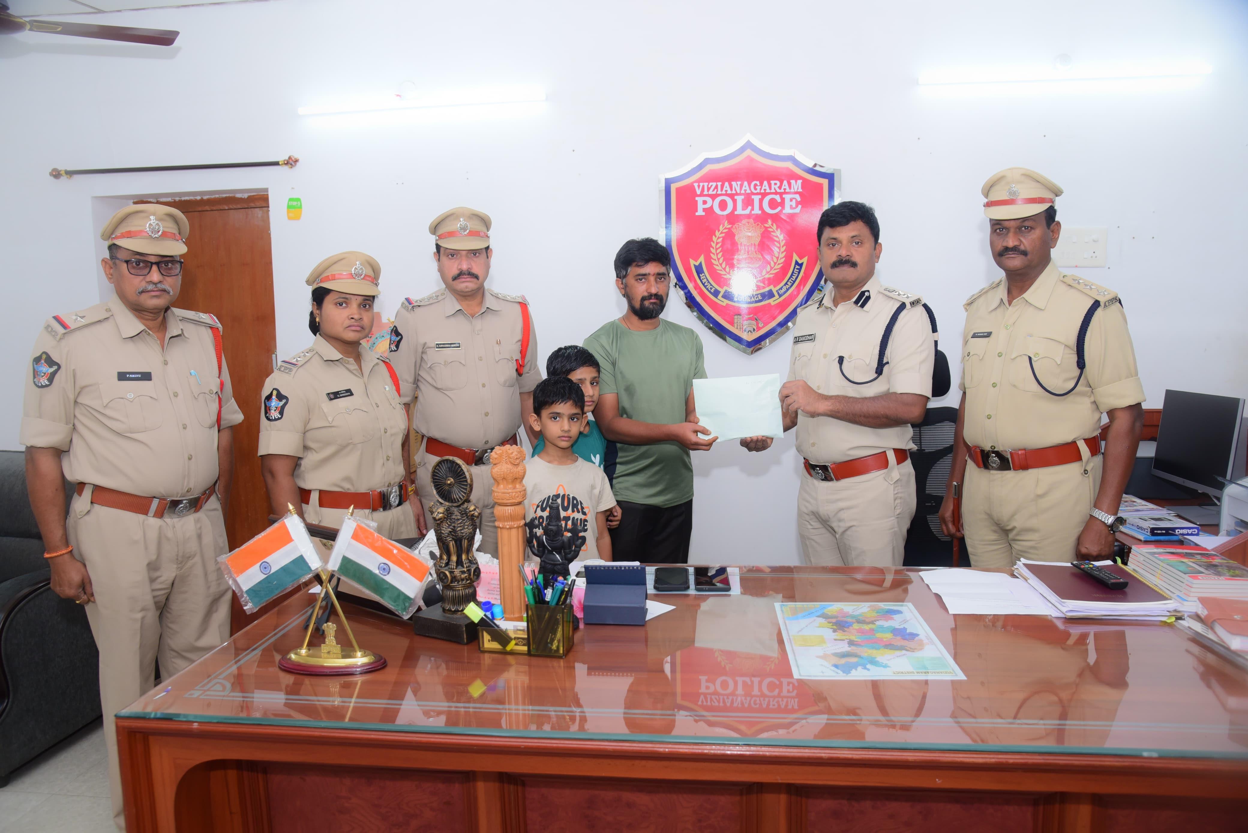 విజయనగరం జిల్లా మహిళా పోలీస్ స్టేషన్లో పనిచేస్తున్న మహిళా కానిస్టేబుల్ కె. నాగమణి అనారోగ్యం కారణంగా విశాఖపట్నం అపోలో ఆసుపత్రిలో చికిత్స పొందుతూ ప్రస్తుతం కోమాలో ఉన్నారు. ఈ క్రమంలో ఆర్థిక ఇబ్బందుల్లో ఉన్న ఆమె కుటుంబాన్ని ఆదుకునేందుకు మహిళా పోలీస్ స్టేషన్ అధికారులు, తోటి సిబ్బంది స్వచ్ఛందంగా రూ. 1,10,000 నగదును సేకరించారు. ఈ మొత్తాన్ని జిల్లా ఎస్పీ ఎ.ఆర్. దామోదర్ చేతుల మీదుగా నాగమణి భర్తకు అందజేశారు.