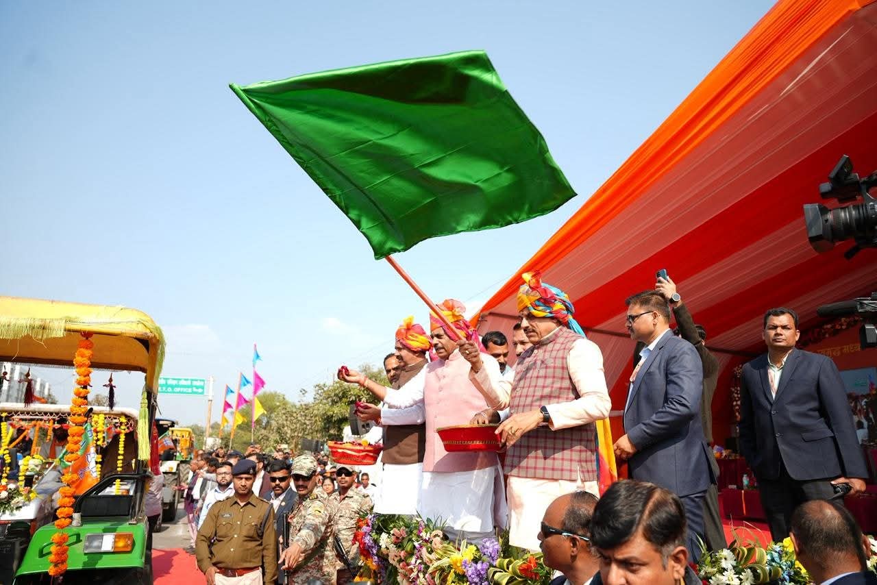 मुख्यमंत्री डॉ मोहन यादव ने कृषक कल्याण वर्ष 2026 के शुभारंभ अवसर पर भोपाल में आयोजित कार्यक्रम में कृषि रथ एवं ट्रैक्टर रैली को हरी झंडी दिखाकर रवाना किया।