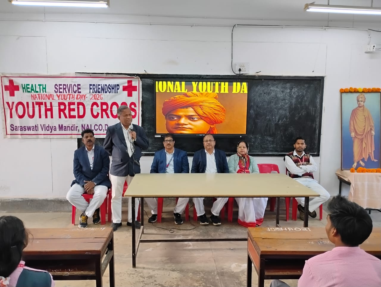 ଦାମନଯୋଡ଼ି : ନାଲକୋ ଶିଳ୍ପାଞ୍ଚଳ ସ୍ଥିତ ସରସ୍ୱତୀ ବିଦ୍ୟା ମନ୍ଦିର ପ୍ରେକ୍ଷ୍।ଳୟରେ ଆଜି ରେଡ୍ ରିବନ୍ କ୍ଲବ ଓ ଯୁବ ରେଡ୍ କ୍ରସ୍ ତରଫରୁ ଜାତୀୟ ଯୁବ ଦିବସ ପାଳିତ ହୋଇଯାଇଛି। ସ୍ବାମୀ ବିବେକାନନ୍ଦ ଙ୍କ ୧୬୩ ତମ ଜୟନ୍ତୀ ଅବସରରେ ମୁଖ୍ୟ ଅତିଥି ଭାବେ ବିଦ୍ୟାଳୟର ଭାରପ୍ରାପ୍ତ ଅଧକ୍ଷ ମଧୁ ସୁଦନ ପଣ୍ଡା ଯୋଗଦେଇ ସ୍ବାମୀ ବିବେକାନନ୍ଦ ଙ୍କ ଫଟୋଚିତ୍ରରେ ପୁଷ୍ପମାଲ୍ୟ ଅର୍ପଣ ପୂର୍ବକ କାର୍ଯ୍ୟକ୍ରମର ଶୁଭାରମ୍ଭ କରିଥିଲେ। ଏହି କାର୍ଯ୍ୟକ୍ରମରେ ମୁଖ୍ୟ ବକ୍ତା ଭାବେ ବରିଷ୍ଠ ଶିକ୍ଷକ ଅମୂଲ୍ୟ ସାହୁ ତାଙ୍କ ବକ୍ତବ୍ୟରେ କହିଥିଲେ ସ୍ବାମୀ ବିବେକାନନ୍ଦ କେବଳ ଏକ ସନ୍ନ୍ୟାସୀ ନୁହନ୍ତି ,ସେ ଥିଲେ ଏକ ଜାଗ୍ରତ ଚେତନା, ଏକ ଯୁବ ଆତ୍ମବିଶ୍ୱାସର ପ୍ରତୀକ। ଅନ୍ୟତମ ବକ୍ତା ଶିକ୍ଷୟିତ୍ରୀ ଡ. ସ୍ଵାତୀ ଚାଟାର୍ଜୀ ତାଙ୍କର ଅଭିଭାଷଣ ରେ ଆଜି ଯୁବ ଦିବସରେ ଆମ ସମସ୍ତଙ୍କ ଦାୟିତ୍ୱ । ନିଜକୁ ଶକ୍ତିଶାଳୀ କରିବା ସହିତ ସମାଜକୁ ଆଲୋକିତ କରିବା, ସ୍ବାମୀ ବିବେକାନନ୍ଦଙ୍କ ସ୍ୱପ୍ନ ଥିଲା । ଏକ ଏମିତି ଭାରତ, ଯେଉଁଠାରେ ଯୁବକ ମାନେ ନିର୍ଭୟ, ନୀତିଶୀଳ ଓ ସ୍ୱାଭିମାନୀ ହେବେ। ଅନ୍ୟମାନଙ୍କ ମଧ୍ୟରେ ଡ଼ଃ ନିରୋଦ କୁମାର ପ୍ରଧାନ ଓ ଉଦ୍ଧବ ପାତ୍ର ସମ୍ମାନିତ ଅତିଥି ଭାବେ ଯୋଗଦେଇଥିଲେ। ଉକ୍ତ କାର୍ଯ୍ୟକ୍ରମରେ ଯୁବ ରେଡ୍ କ୍ରସ ପରାମର୍ଶ ଦାତା ଡକ୍ଟର ନରେଶ ଚନ୍ଦ୍ର ସାହୁ ଅତିଥି ପରିଚୟ ପ୍ରଦାନ କରିବାସହ ସଂଯୋଜନା ଓ ପରିଚାଳନା କରିଥିଲେ। ଶେଷରେ ଉଦ୍ଧବ ପାତ୍ର ଧନ୍ୟବାଦ୍ ଅର୍ପଣ କରିଥିଲେ।