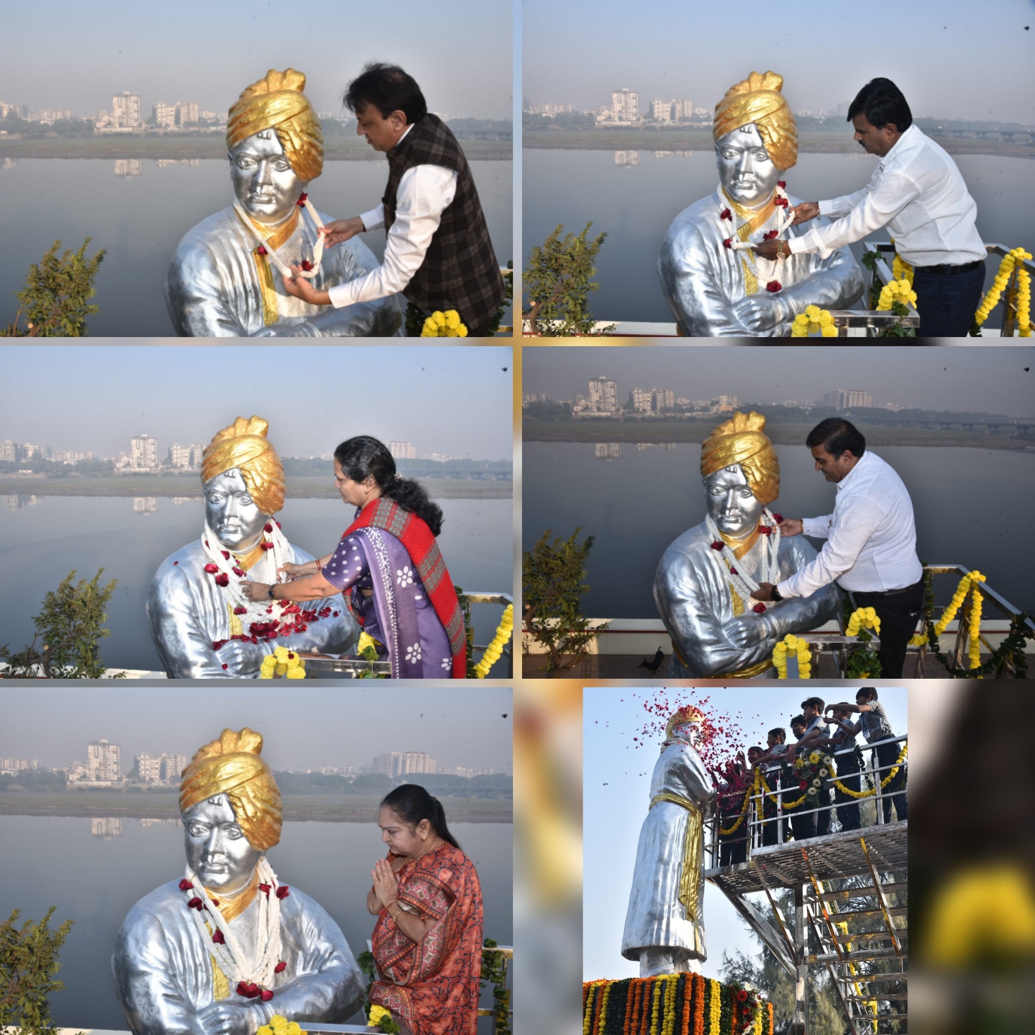સુરત મહાનગરપાલિકા દ્વારા સ્વામી વિવેકાનંદજીની જન્મજયંતિ ઉજવણી નિમિત્તે તા.૧ર/૦૧/૨૦૨૬ને સોમવારના રોજ સવારે ૮.૩૦ કલાકે દયાળજી બાગ, નાનપુરા, સુરત ખાતે સ્વામી વિવેકાનંદજીની પ્રતિમાને સુતરાંજલી અર્પણ કરી વંદનાનો કાર્યક્રમ રાખવામાં આવ્યો હતો. દેશ વિદેશમાં ખ્યાતિ પામેલા અને ભારતના દેશભકત સંતને તા.૧ર જાન્યુઆરી ર૦૨૬ની ખુશનુમાં સવારે કાર્યક્રમ સ્થળે મેયર દક્ષેશભાઇ માવાણી, ડે.મેયર ડો.નરેન્દ્રભાઈ પાટીલ, શાસક પક્ષ નેતા શશીબેન ત્રિપાઠી, શાસક પક્ષના દંડક ધર્મેશકુમાર વાણીયાવાલા, સાંસ્કૃતિક સમિતિ અઘ્યક્ષા સોનલબેન દેસાઇ, વિવિધ સમિતિના અઘ્યક્ષઓ, મ્યુનિસિપલ સદસ્યઓ અને મ્યુનિ.અધિકારીઓએ સ્વામી વિવેકાનંદજીની પ્રતિમાને સૂતરની આંટી પહેરાવી વંદના કરી હતી. નગર પ્રાથમિક શિક્ષણ સમિતિના બાળકો તથા શહેરીજનોએ સ્વામી વિવેકાનંદજીને પુષ્પો અર્પણ કરી વંદના કરી હતી.
