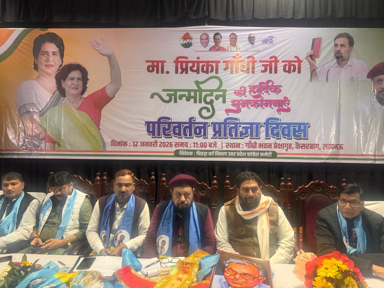 आज दिनांक 12 जनवरी 2026 को गांधी भवन प्रेक्षागृह,कैसरबाग लखनऊ में ओबीसी विभाग उत्तर प्रदेश द्वारा कांग्रेस पार्टी की राष्ट्रीय महासचिव एवं वायनाड से सांसद मा. प्रियंका गांधी जी का जन्मदिन परिवर्तन प्रतिज्ञा दिवस के रूप में मनाया गया! हजारों की संख्या में उपस्थित कांग्रेस पार्टी के नेता और कार्यकर्तागणों को 2027 विधानसभा चुनाव के लिए मज़बूत तैयारी करने का निर्देश देते हुए अतिपिछड़े समाज को हिस्सेदारी और हक़ देने की नीतियों पर चर्चा किया!