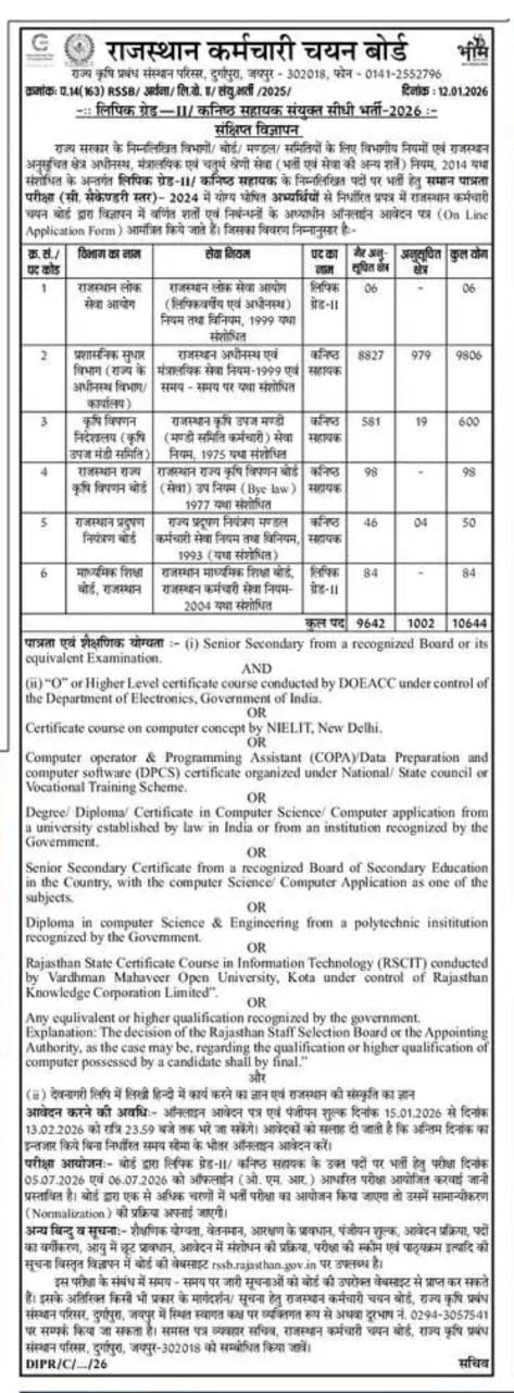 लिपिक ग्रेड 2nd / कनिष्ठ सहायक सयुंक्त सीधी भर्ती विज्ञापन 2026 हुआ जारी
