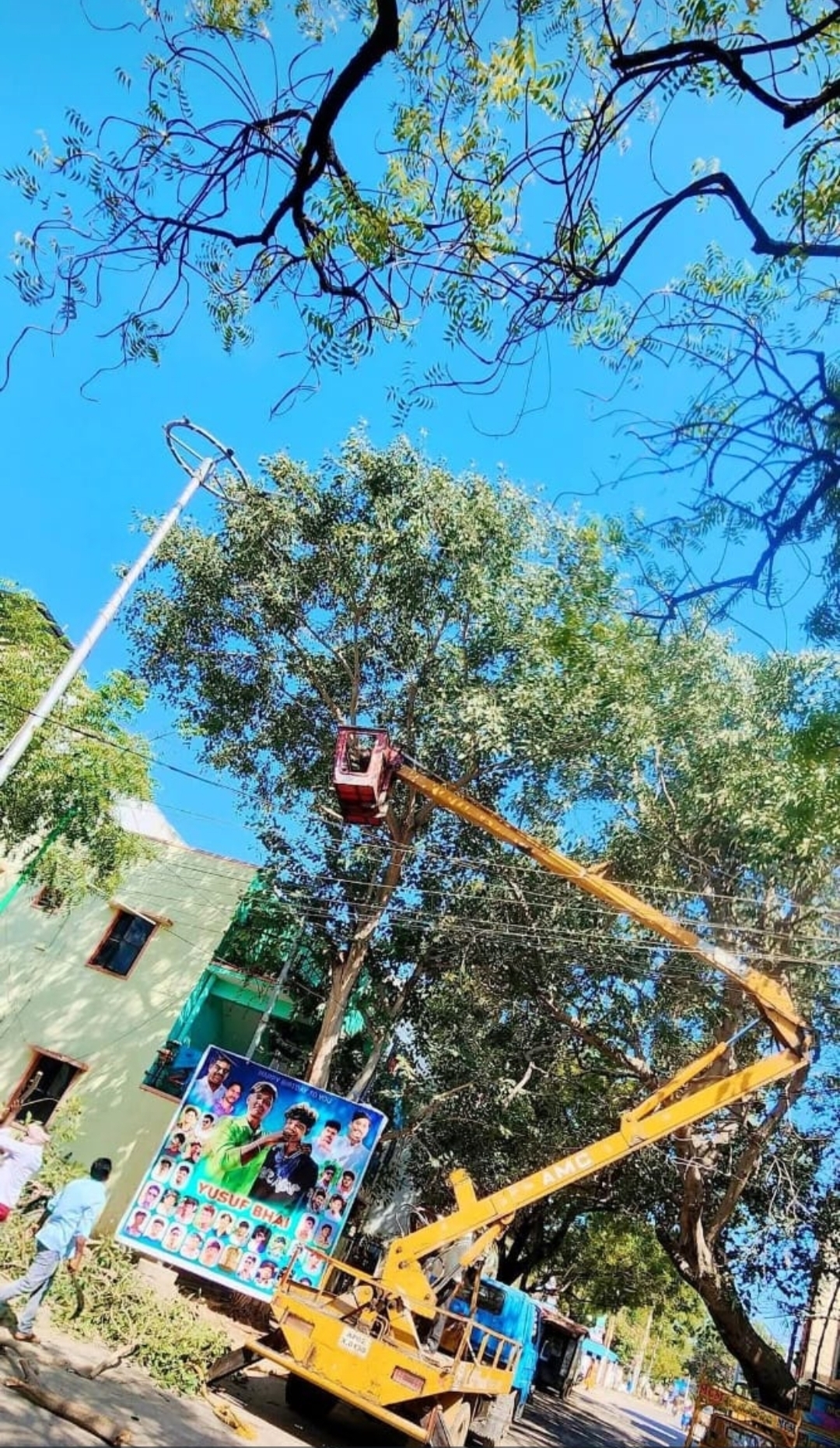 *43వ డివిజన్లోని 11 కెవి వైర్ల వద్ద ప్రమాదకరంగా ఉన్న చెట్ల కొమ్మలను తొలగించు స్పెషల్ డ్రైవ్ లో పాల్గొన్న కార్పొరేటర్ అలీషేర్ ఇసాక్*