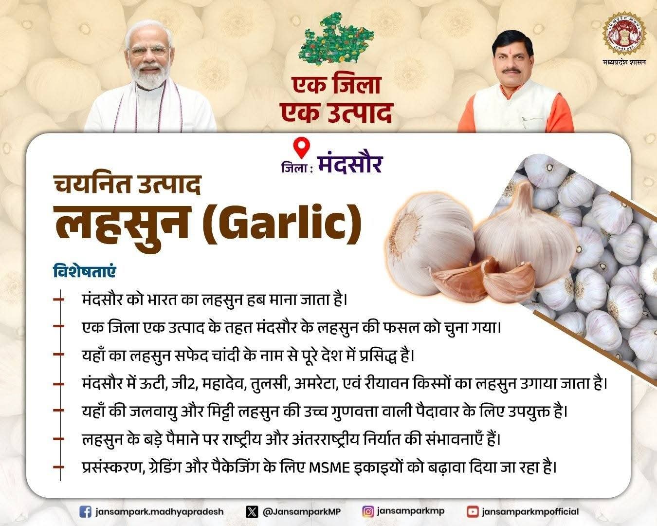 एक जिला एक उत्पाद चयनित उत्पाद लहसुन जिला मंदसौर