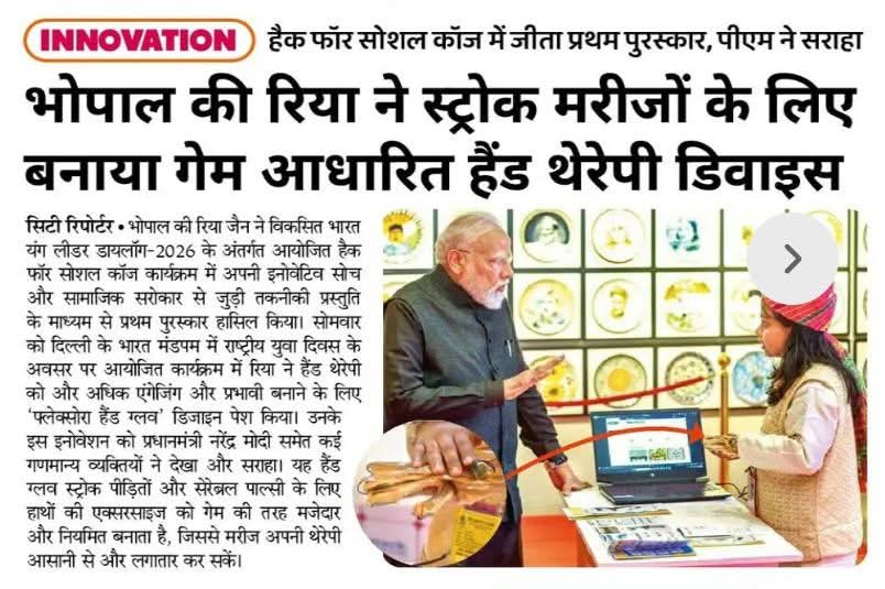भोपाल की रिया ने स्ट्रोक मरीजों के लिए बनाया गेम आधारित हैंड थैरेपी डिवाइस