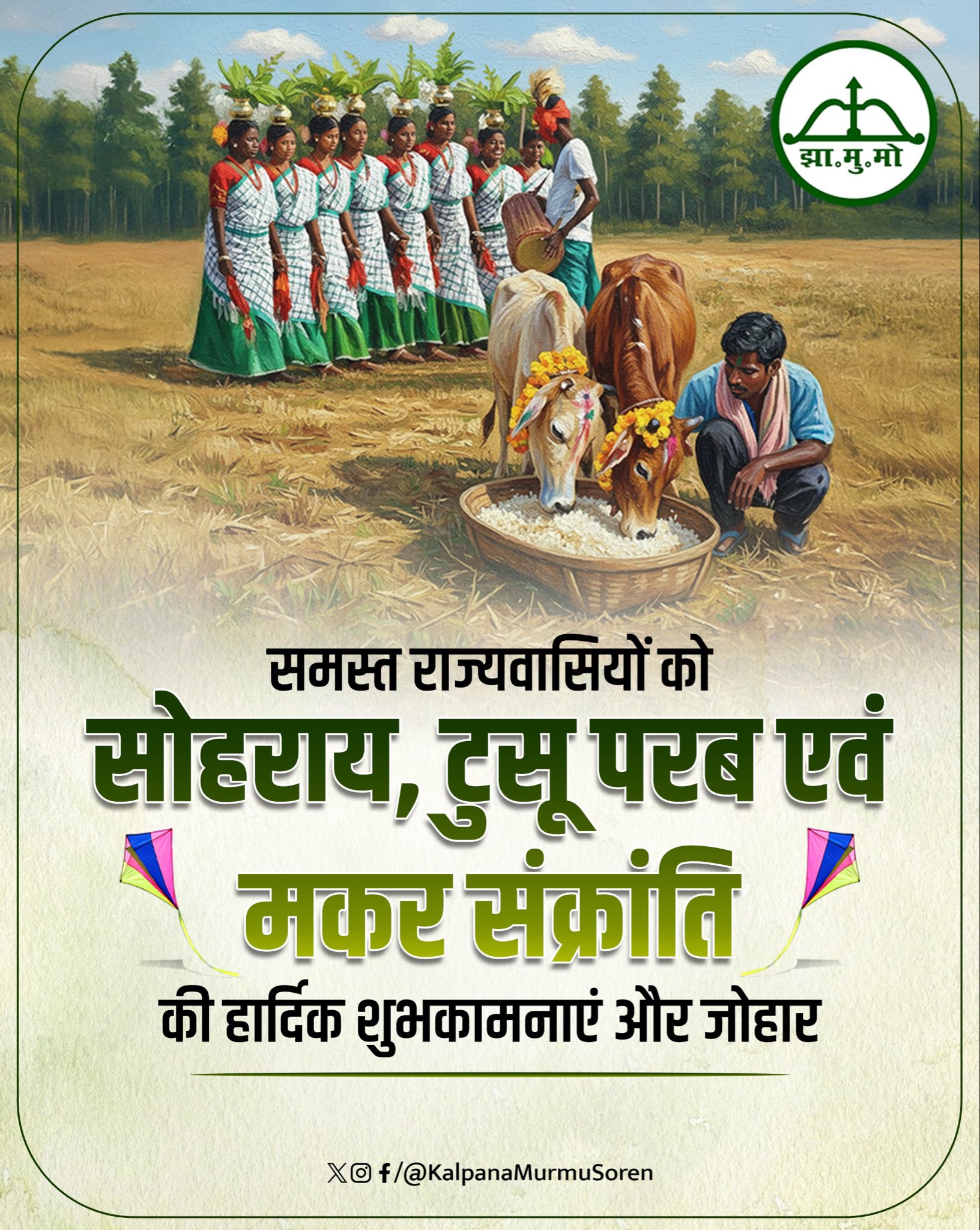 समस्त राज्यवासियों को सोहराय, टूसू परब एवं मकर संक्रांति की हार्दिक शुभकामनाएं एवं जोहार।