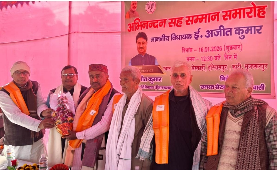 विधायक अजीत कुमार ने कहा कि कांटी विधानसभा क्षेत्र के महान जनता के आशीर्वाद से वे चुनाव जीते हैं और उसके बाद से ही जनता के सभी रुके कार्य तेजी गति से होने लगी है।