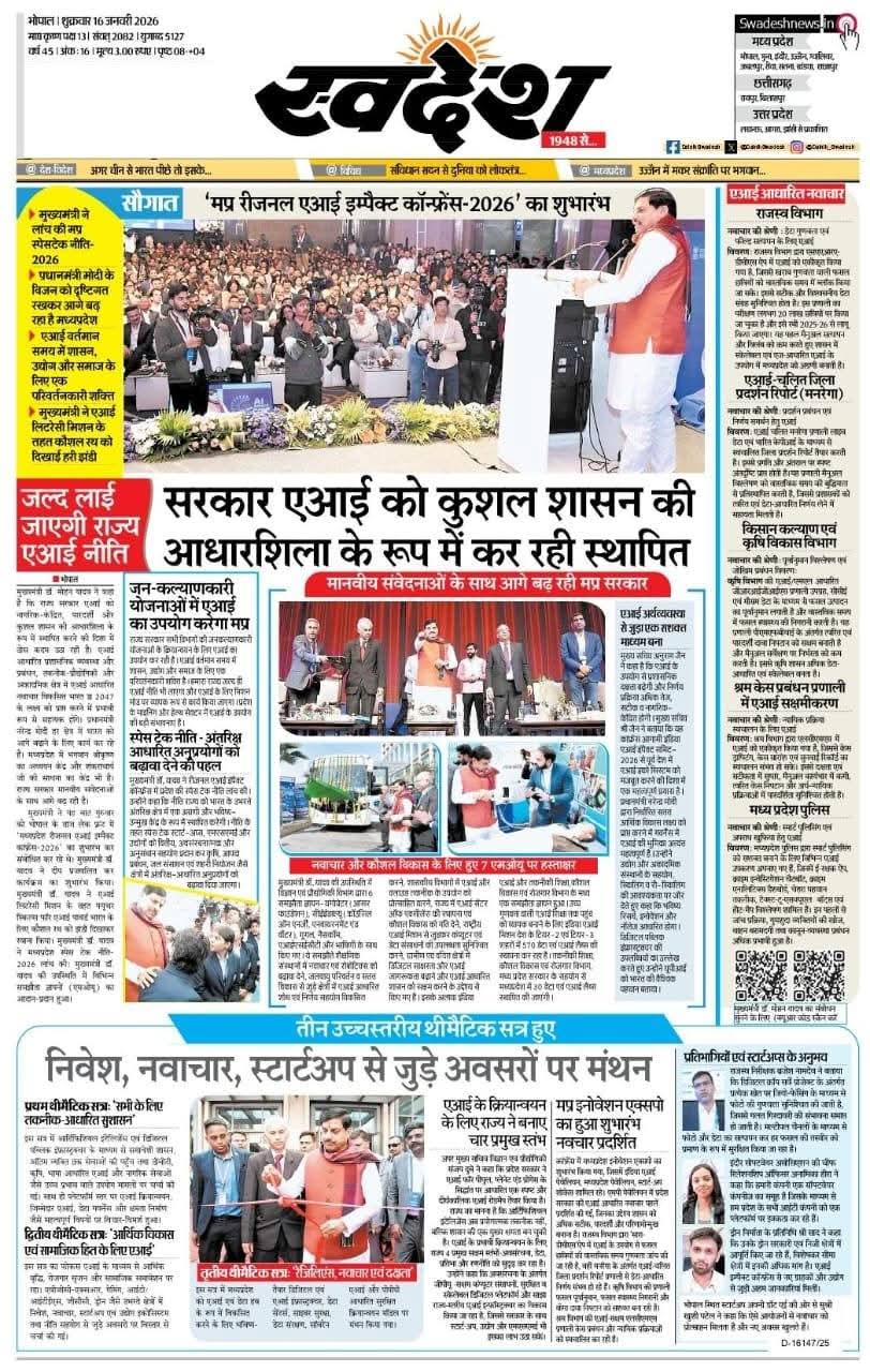 Dr Mohan Yadav CM Madhya Pradesh Swadesh #CMMadhyaPradesh #AIImpactConference2026 #IndiaAI #JansamparkMP