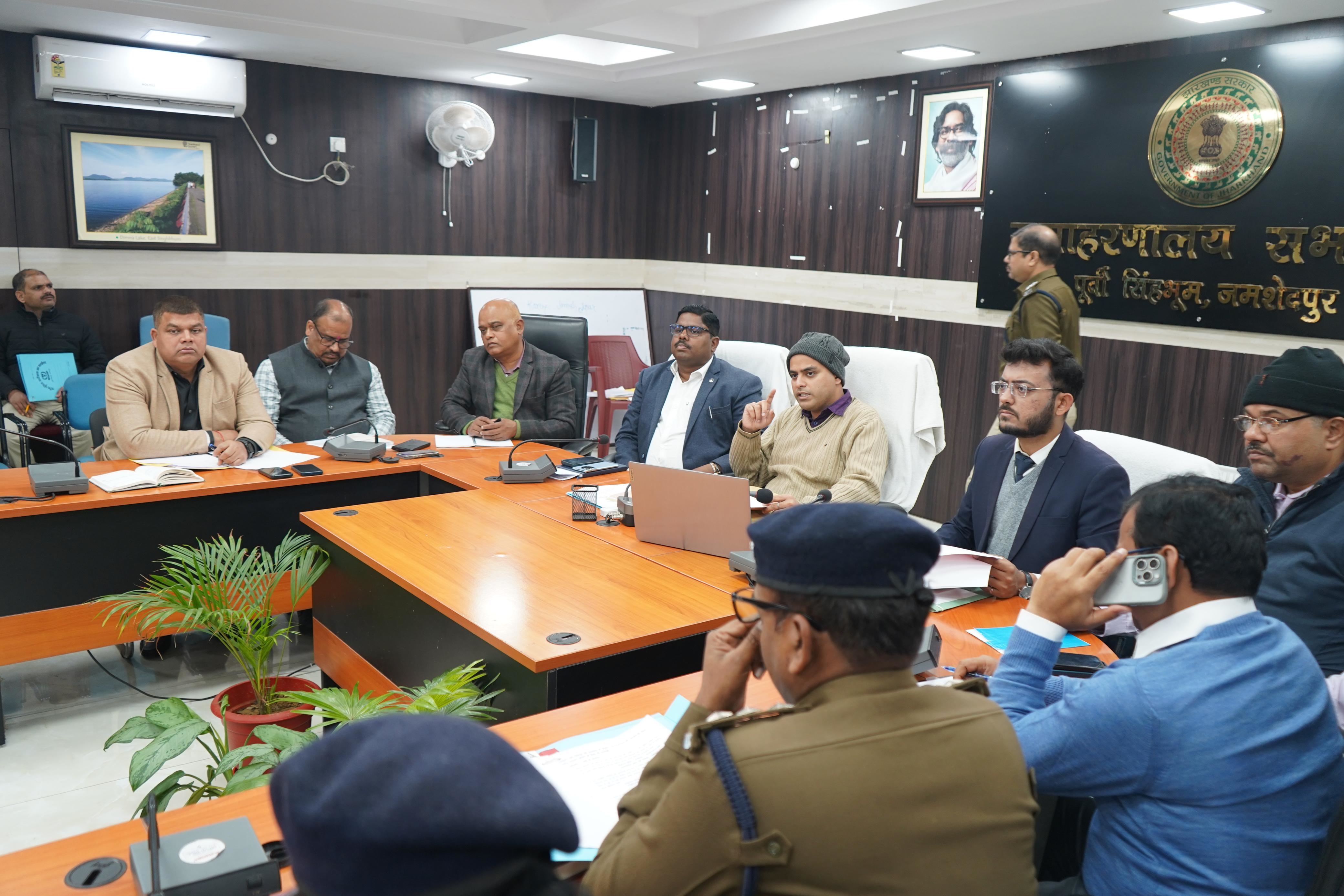 उपायुक्त श्री कर्ण सत्यार्थी की अध्यक्षता में समाहरणालय सभागार में जिला खनन टास्क फोर्स की महत्वपूर्ण बैठक आयोजित की गई। बैठक में डीएफओ श्री सबा आलम अंसारी, एसडीएम धालभूम श्री अर्नव मिश्रा, एडीएम (लॉ एंड ऑर्डर) श्री राहुल जी आनंद, डीटीओ श्री धनंजय, एसडीएम घाटशिला श्री सुनील चंद्र, डीएमओ श्री सतीश नायक सहित विभिन्न विभागों के वरीय पदाधिकारी उपस्थित रहे। वहीं सभी अंचलाधिकारी एवं थाना प्रभारी वर्चुअल माध्यम से बैठक में शामिल हुए।