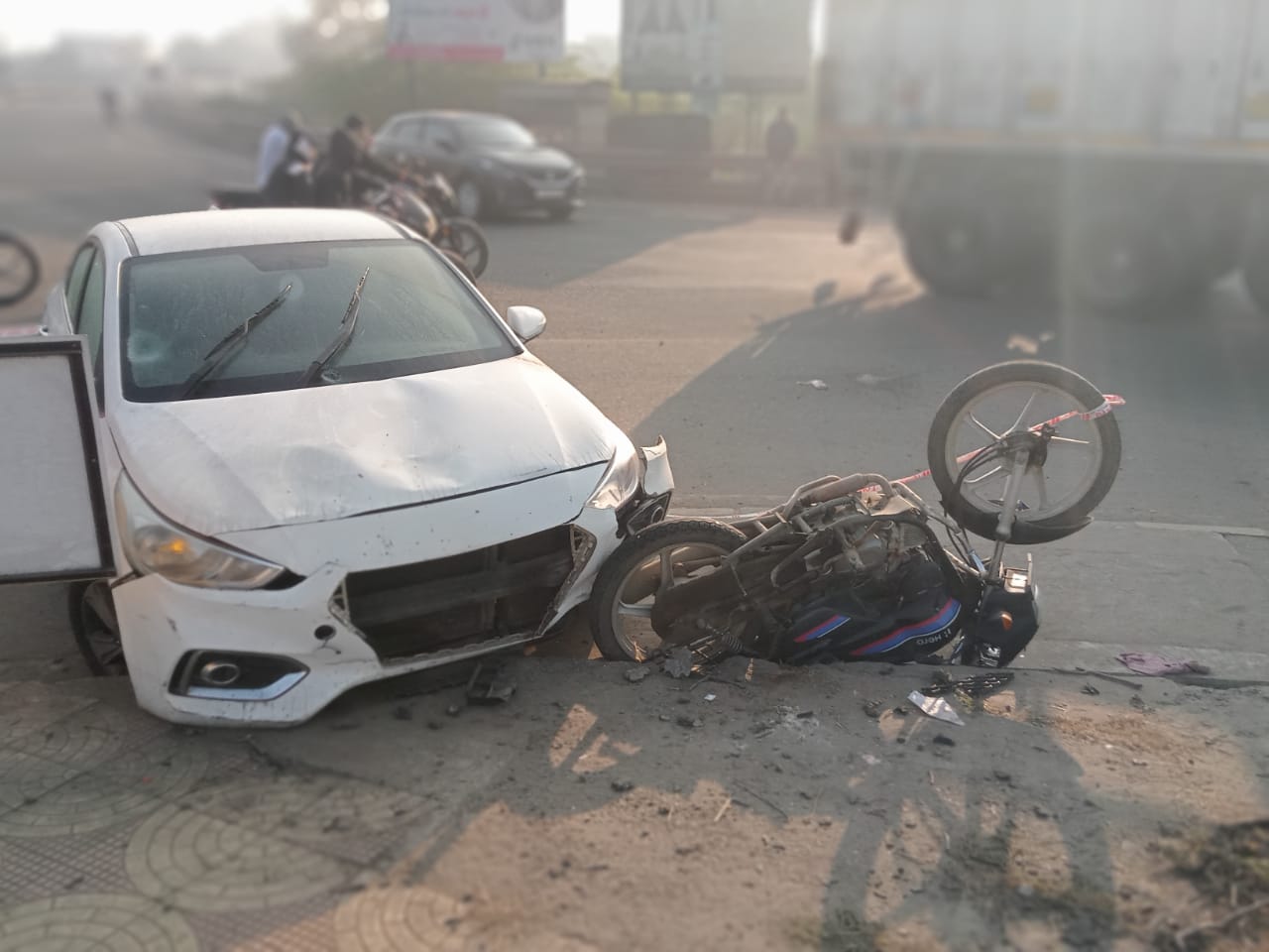 गुजरात = राजकोट जिले के पद्धरी में आज हीरो होंडा और एक चार पहिया वाहन के बीच भीषण दुर्घटना हुई। यह दुर्घटना जामनगर राजमार्ग पर पद्धरी तालुका के मोविया गांव के चौराहे के पास हुई। उपलब्ध जानकारी के अनुसार, किसी के हताहत होने की कोई खबर नहीं