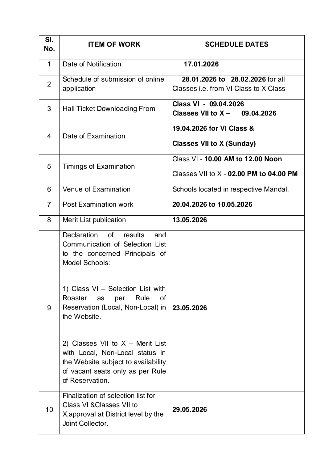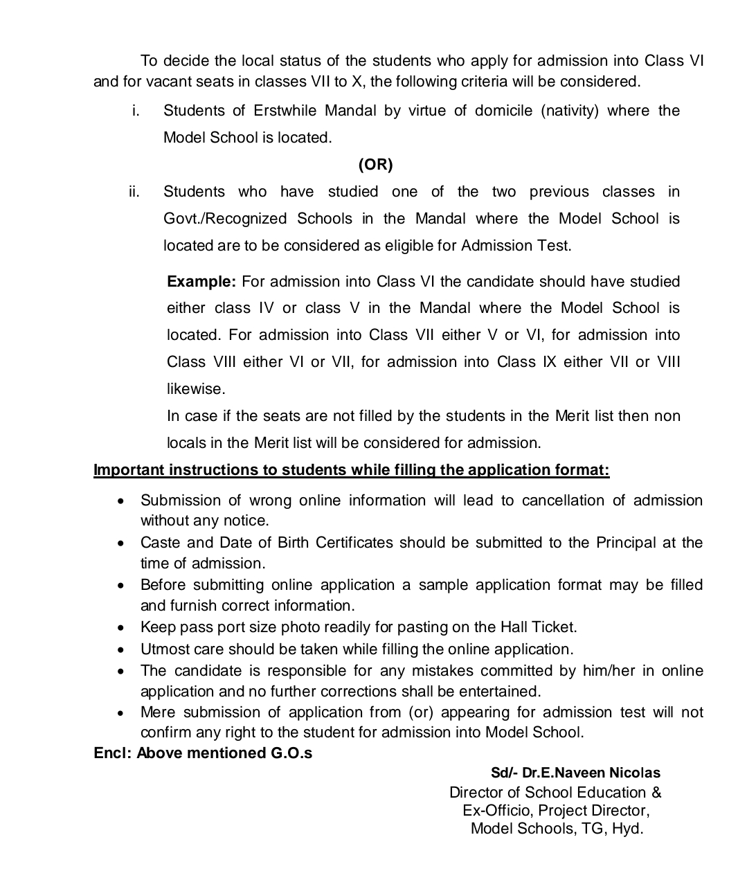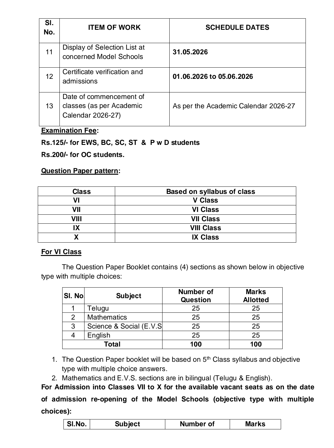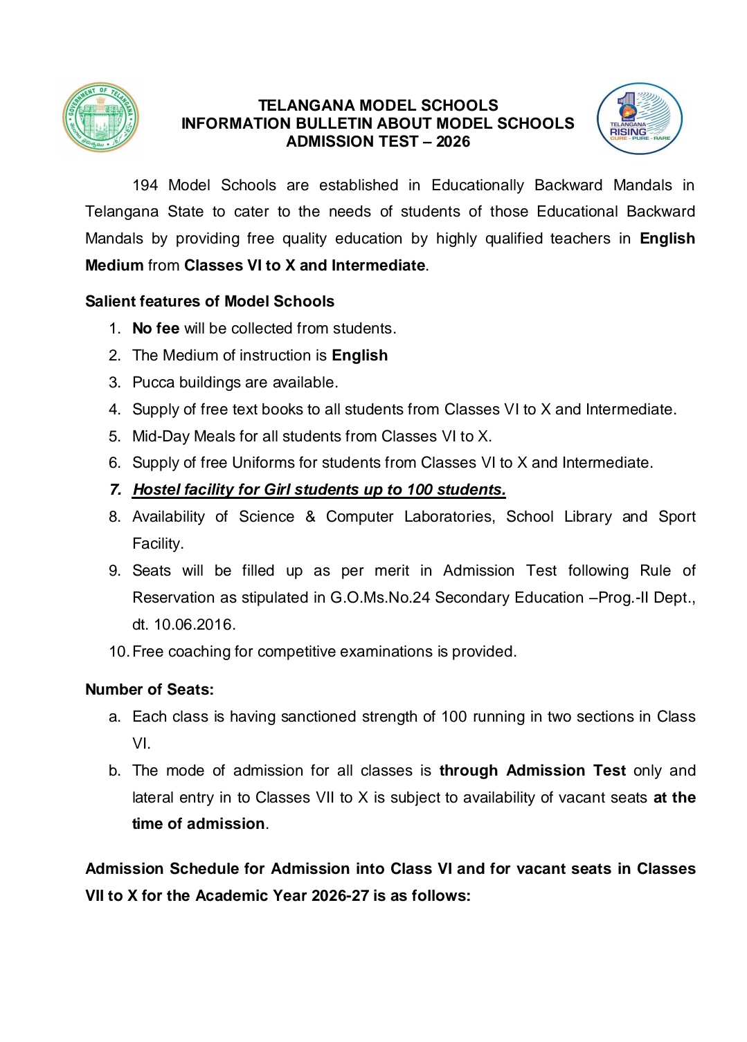 TELANGANA MODEL SCHOOL INFORMATION BULLTEINS ABOUT MODEL SCHOOL ADDMISSION TEST - 2026
