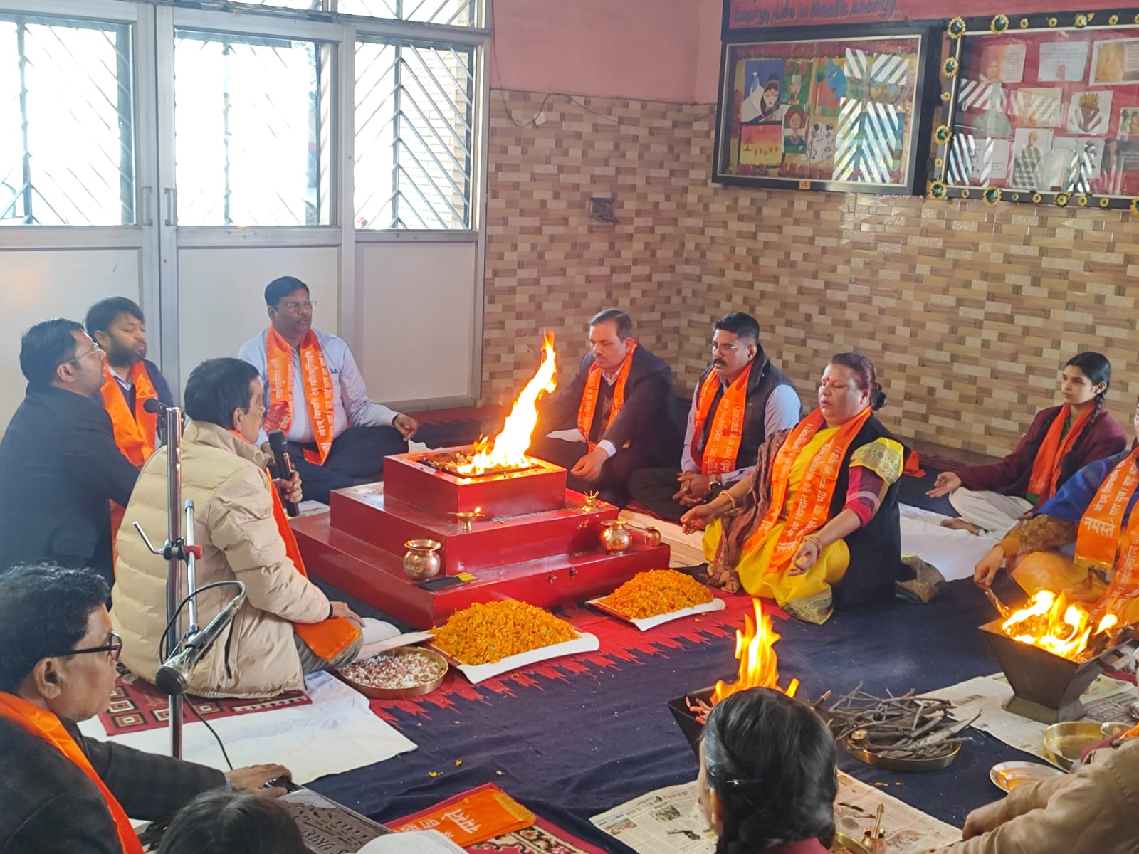 तत्पश्चात ए.आर.ओ./प्राचार्या श्रीमती संध्या एल. पांडेय के नेतृत्व में मुख्य यजमान जी.एम. खड़िया परियोजना श्री के.डी. जैन, प्रोजेक्ट ऑफिसर श्री आर.के. अवस्थी, एस.ओ. (एच.आर.) श्री विवेक चतुर्वेदी एवं मैनेजर सी.डी. श्री अमरेंद्र ने विद्यालय के दैनिक हवन–भजन कार्यक्रम में सक्रिय सहभागिता की। संस्कृत शिक्षक डॉ. मिथिलेश झा एवं श्री नितेश दुबे सहित सभी शिक्षक–शिक्षिकाओं ने मंत्रोच्चारण के साथ अग्नि में समिधा अर्पित कर वातावरण को पवित्र एवं सकारात्मक बनाया।