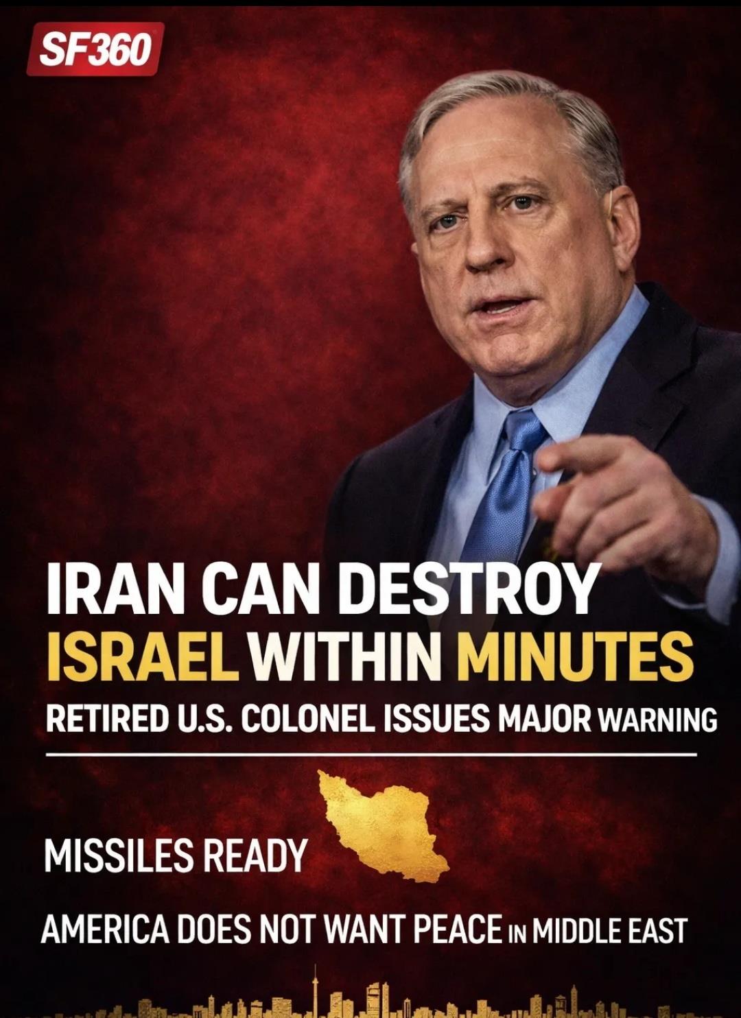 ଇରାନ ଏକ ମିନିଟ୍ ରେ ଧ୍ବଂସ କରିବା ପାଇଁ ଇସ୍ରାଏଲ କୁ ଚେତାବନୀ ଦେଲେ ୟୁ଼ ଏସ୍ ପୂର୍ବତନ କୋଲୋନେଲ୍। ତାହା ସହ ସେ କହିଛନ୍ତି ଅସ୍ତ୍ରଶସ୍ତ୍ର ପ୍ରସ୍ତୁତ ଅଛି ଓ ଆମେରିକା ଶାନ୍ତି ଚାହୁଁନାହିଁ। ଏହା ଆଗାମୀ ଦିନରେ ଭୟକଂର ହେବ ବୋଲି ସେ କହିଛନ୍ତି।