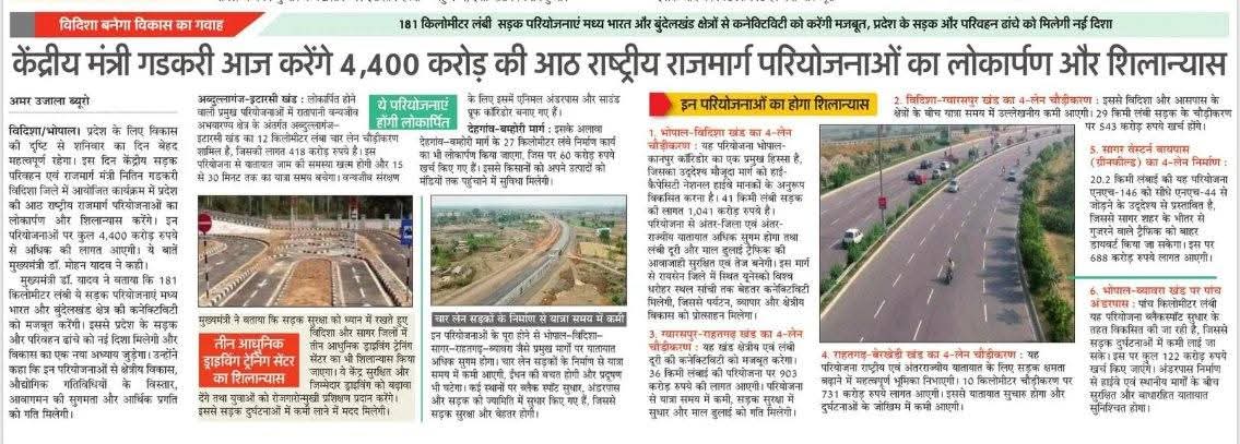 केंद्रीय सड़क परिवहन मंत्री श्री Nitin Gadkari करेंगे ₹4,400 करोड़ की 8 राष्ट्रीय राजमार्ग परियोजनाओं का लोकार्पण और शिलान्यास