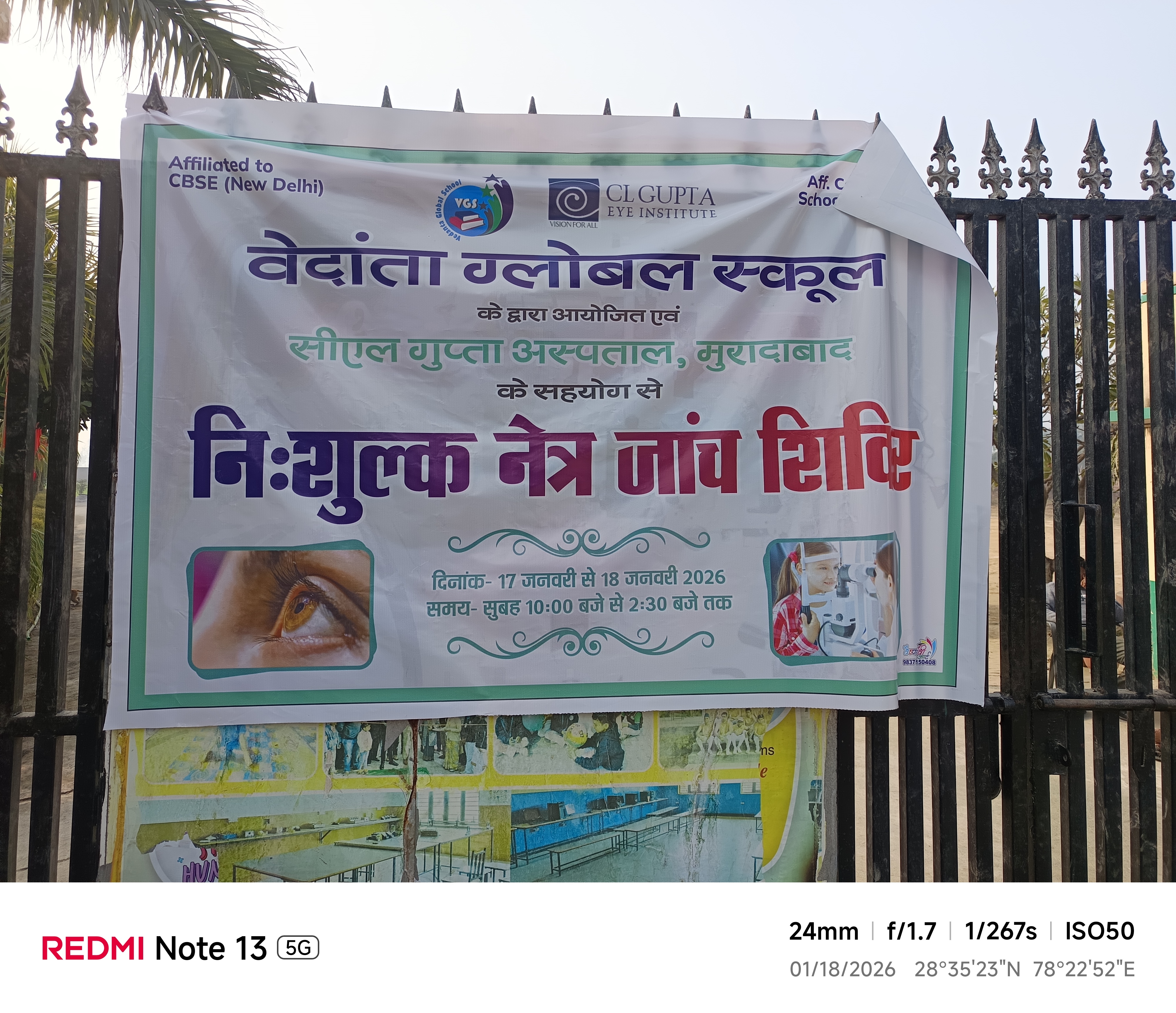 वेदांता ग्लोबल स्कूल ढवारसी अमरोहा में सी एल गुप्ता आई हॉस्पिटल के सहयोग से किया गया निशुल्क नेत्र चिकित्सा शिविर का आयोजन।