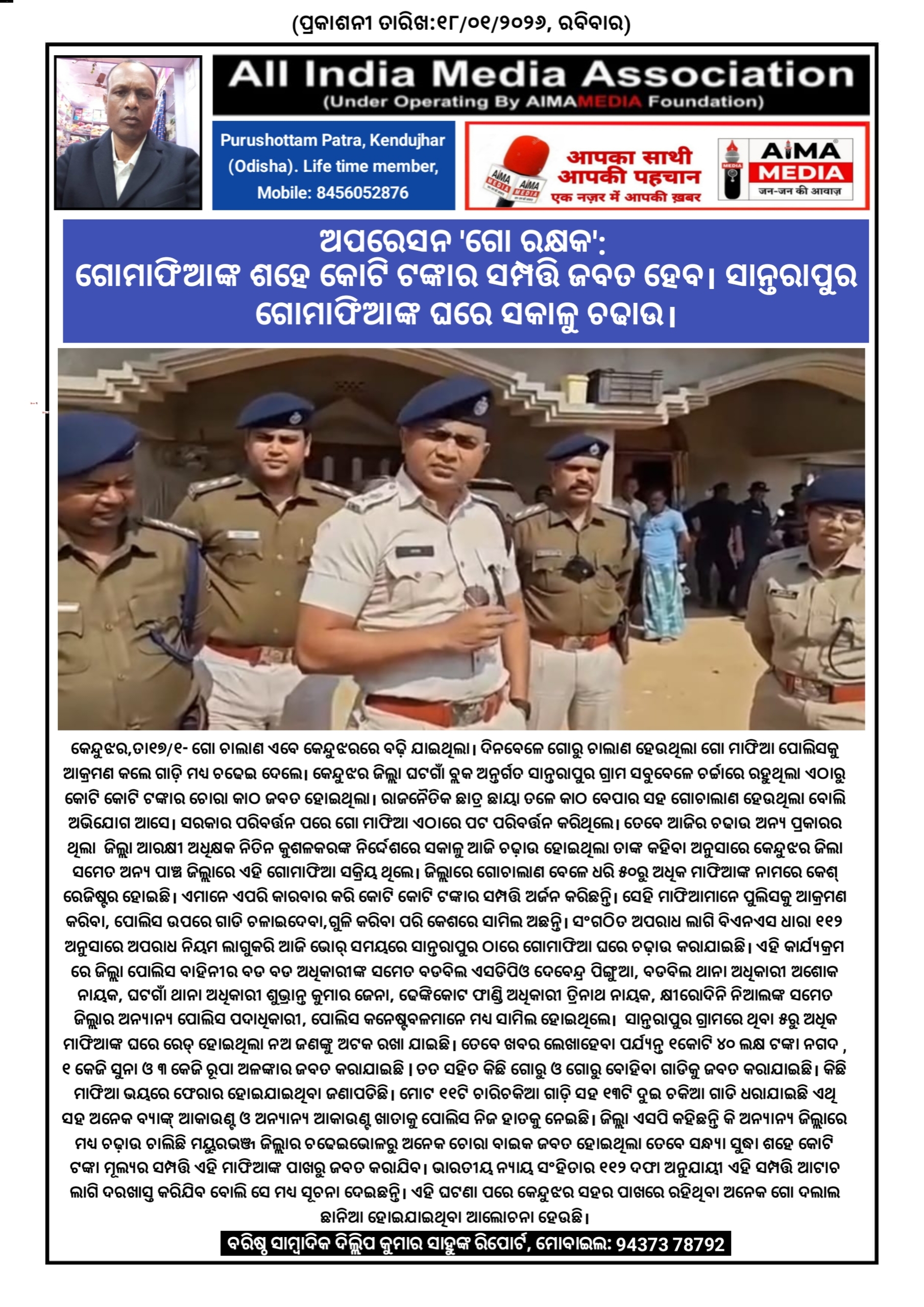 ଅପରେସନ 'ଗୋ ରକ୍ଷକ': ଗୋମାଫିଆଙ୍କ ଶହେ କୋଟି ଟଙ୍କାର ସମ୍ପତ୍ତି ଜବତ ହେବ। ସାନ୍ତରାପୁର ଗୋମାଫିଆଙ୍କ ଘରେ ସକାଳୁ ଚଢାଉ।