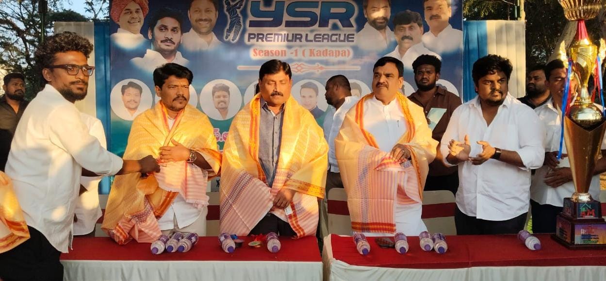 కడప నగరం ఆర్ట్స్ కాలేజీ గ్రౌండ్ నందు సంక్రాంతి పండుగ సందర్భంగా ఆర్గనైజర్ లు అనిల్ కుమార్ రెడ్డి, ప్రదీప్ లు మరియు వారి మిత్ర బృందం ఆధ్వర్యం లో ప్రారంభించిన వైస్సార్ ప్రీమియర్ లీగ్ క్రికెట్ టోర్నమెంట్ సీజన్ -1 లో విజేత కు 1లక్షరూపాయలు, రన్నరప్ కు 50 వేల రూపాయలు వైఎస్ఆర్సిపి వైఎస్ఆర్ జిల్లా అధ్యక్షులు రవీంద్రానాథ్ రెడ్డి , మాజీ డిప్యూటీ సీఎం అంజాద్ భాషా, కడప నగర మేయర్ పాక సురేష్ కుమార్, డిప్యూటీ మేయర్ నిత్యానంద రెడ్డి, కడప నగర యువజన అధ్యక్షుడు & విన్నర్ ప్రేజ్ మనీ దాత గుంటి నాగేంద్ర గారు క్రీడాకారులకు ప్రైజ్ మనీ ని బహుకరించి ట్రోఫీలను అందజేశారు. అనంతరం వైఎస్ఆర్సీపీ కడప నగర యువజన అధ్యక్షుడి ఆధ్వర్యంలో జిల్లా అధ్యక్షులు రవీంద్రనాథ్ రెడ్డి, మాజీ డిప్యూటీ సీఎం అంజద్ భాష , మేయర్ సురేష్ కుమార్,డిప్యూటీ మేయర్ నిత్యానంద రెడ్డిని నాయకులను గజమాలతో ఘనంగా సత్కరించి సన్మానించారు.
