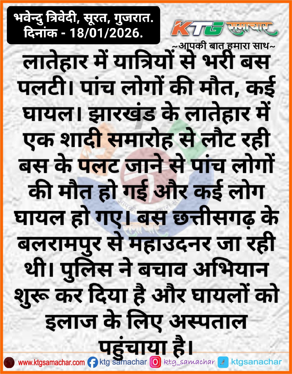 झारखंड के लातेहार में यात्रियों से भरी बस पलटी।