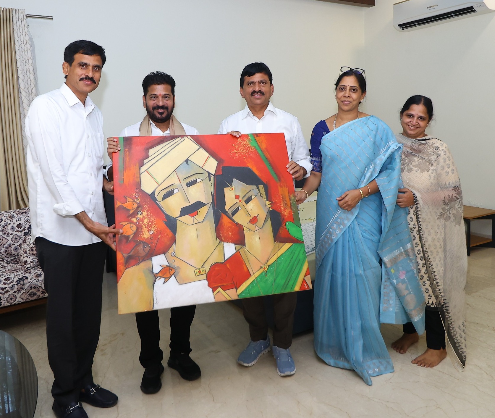 భోజనం అనంతరం ముఖ్యమంత్రి రేవంత్ రెడ్డిని శాలువాతో సత్కరించి, హస్తకళా పెయింటింగ్‌ను మంత్రి పొంగులేటి శ్రీనివాస రెడ్డి దంపతులు, మంత్రి సోదరుడు పొంగులేటి ప్రసాద్ రెడ్డి బహూకరించారు.