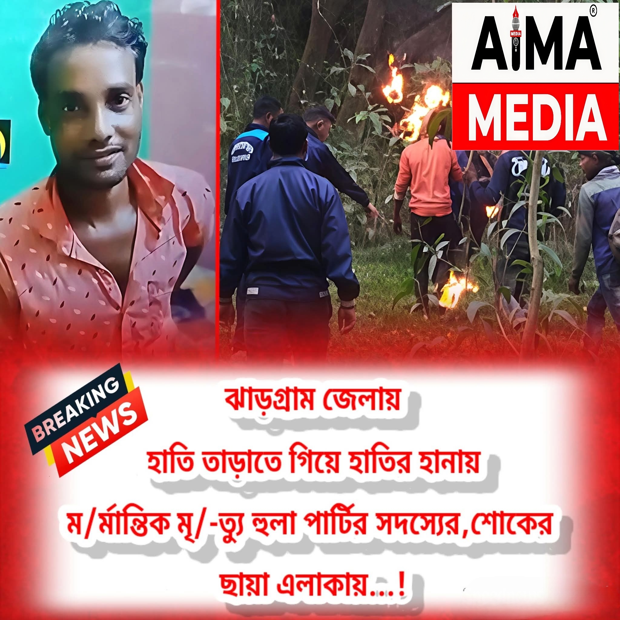ঝাড়গ্রামে হাতি তাড়াতে গিয়ে হাতির হানায় ম/র্মা?ন্তিক মৃ/-ত্যু হুলা পার্টির সদস্যের!