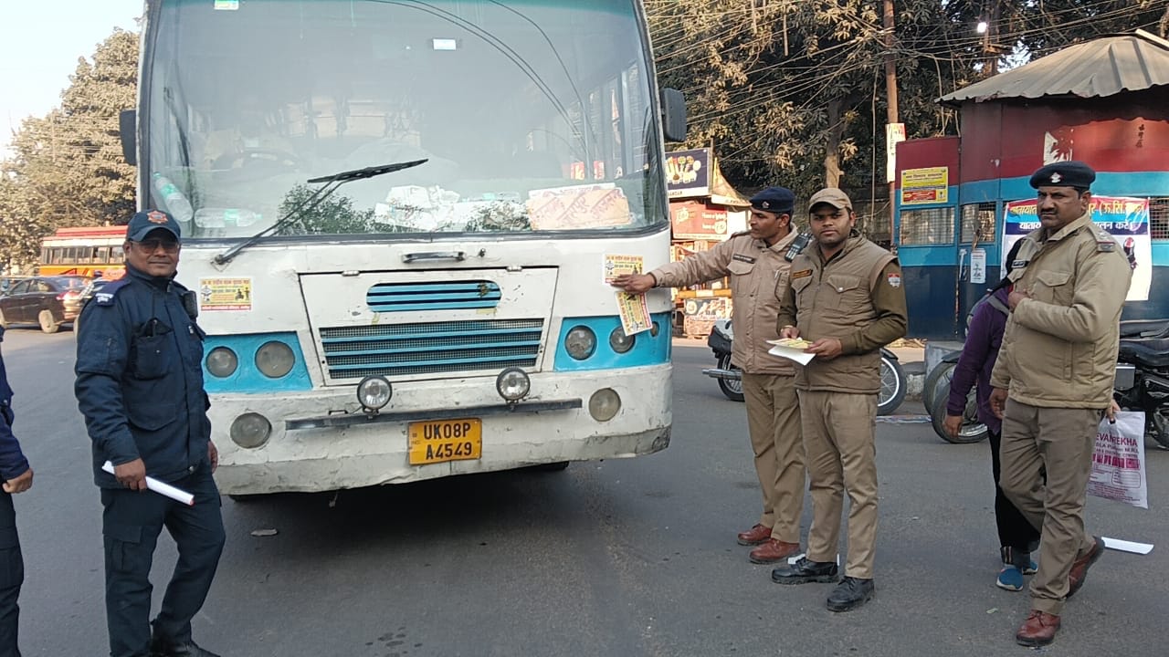 ऊधम सिंह नगर:-काशीपुर में 36वां सड़क सुरक्षा माह अभियान के अंतर्गत दिनांक 18 जनवरी को यातायात पुलिस और सीपीयू टीम द्वारा एमपी चौक,स्टेडियम तिराहा,टांडा तिराहा पर अभियान के अंतर्गत बैनर लगाए गए और पंपलेट वितरण किए व अन्य राज्यों से आ रही बसों में भी यातायात सड़क सुरक्षा को लेकर जानकारियां दी गई,और बड़े माल वाहनो पर रिफ्लेटर लगाए गए।इस अवसर पर टीएसआई अरुण कुमार,टीएसआई रमेश कुमार,एसआई जसवंत सिंह, हेड कांस्टेबल लक्ष्मण सिंह बिष्ट,हेड कांस्टेबल गिरधर सिंह उपस्थित रहे।