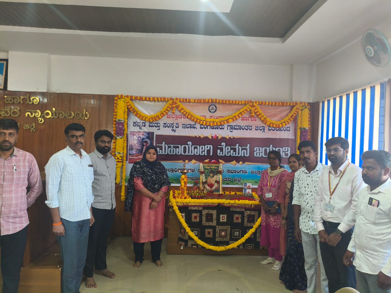 ದೇವನಹಳ್ಳಿ: ಬೆಂಗಳೂರು ಗ್ರಾಮಾಂತರ ಜಿಲ್ಲಾಡಳಿತ, ಜಿಲ್ಲಾ ಪಂಚಾಯತ್ ಹಾಗೂ ಕನ್ನಡ ಮತ್ತು ಸಂಸ್ಕೃತಿ ಇಲಾಖೆ ವತಿಯಿಂದ ಶ್ರೀ ಮಹಾಯೋಗಿ ವೇಮನ ಜಯಂತಿಯನ್ನು ಜಿಲ್ಲಾಡಳಿತ ಭವನದ ಜಿಲ್ಲಾಧಿಕಾರಿಯವರ ನ್ಯಾಯಾಲಯ ಸಭಾಂಗಣದಲ್ಲಿ ಅರ್ಥಪೂರ್ಣವಾಗಿ ಆಚರಿಸಲಾಯಿತು.