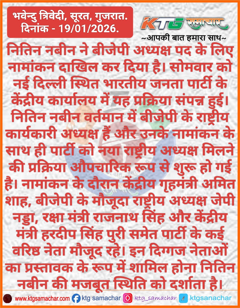नितिन नवीन ने भाजपा अध्यक्ष पद के लिए नामांकन दाखिल कर दिया है।