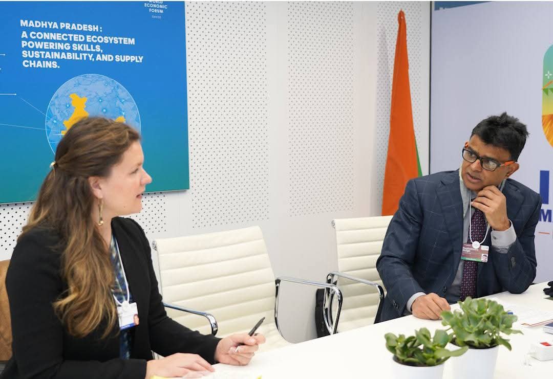 वर्ल्ड इकोनॉमिक फोरम–2026 के दौरान दावोस में प्रमुख सचिव, औद्योगिक नीति एवं निवेश प्रोत्साहन, श्री राघवेन्द्र कुमार सिंह ने एआई आधारित प्रोटीन नवाचार के क्षेत्र में अग्रणी कंपनी शिरू की सीईओ एवं संस्थापक डॉ. जैस्मिन ह्यूम के साथ सहयोग की संभावनाओं पर चर्चा की।